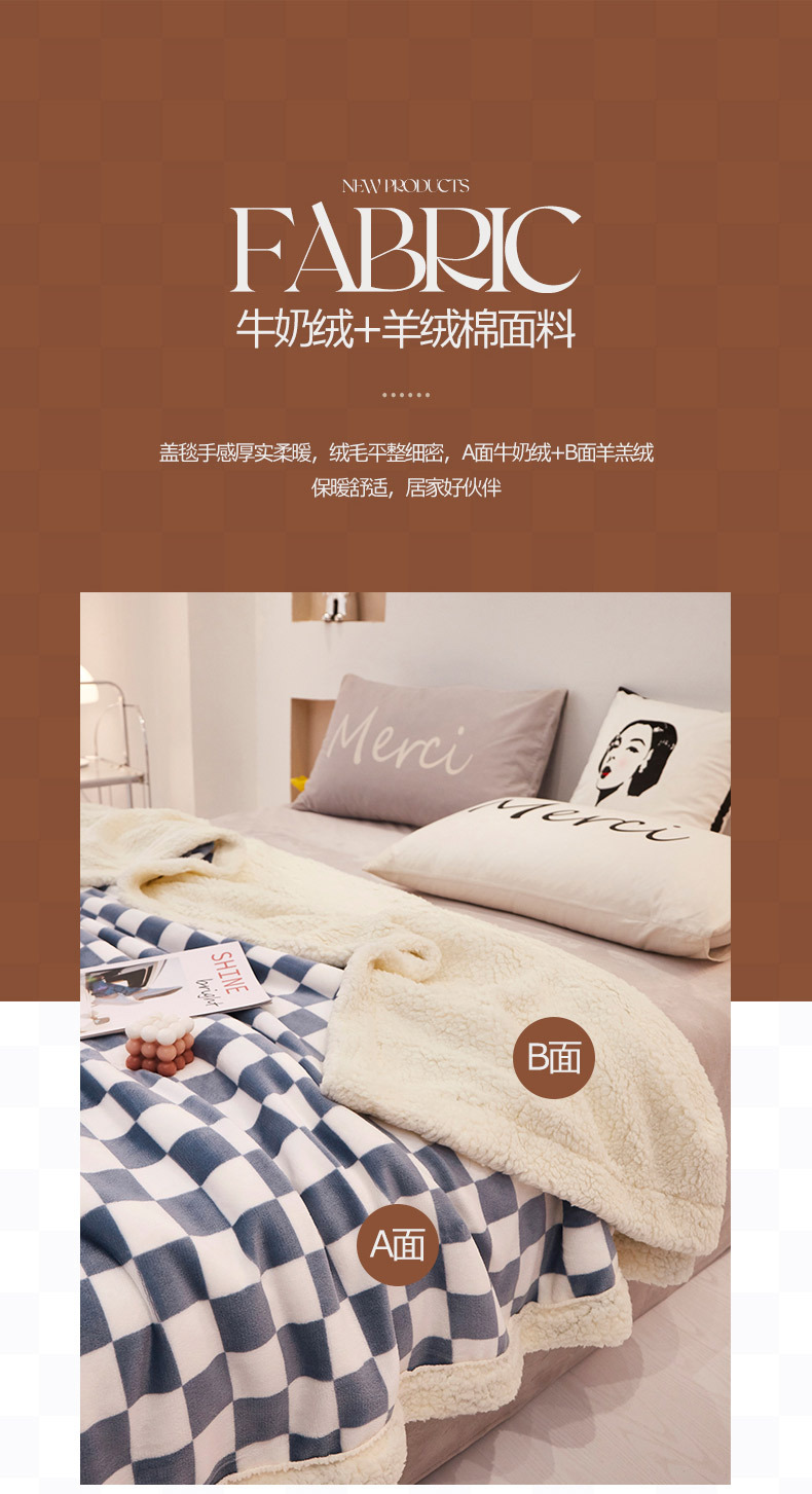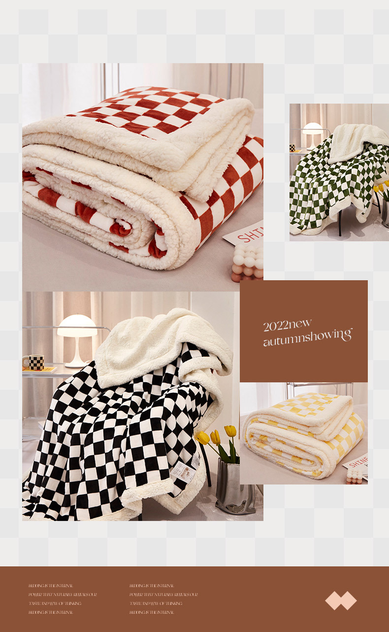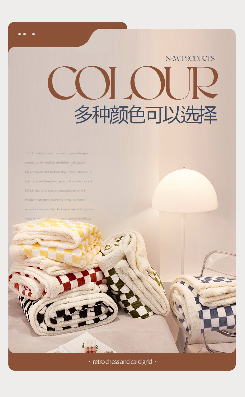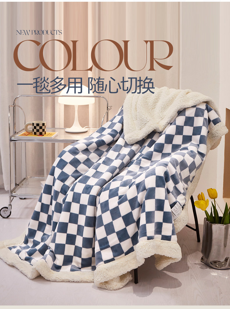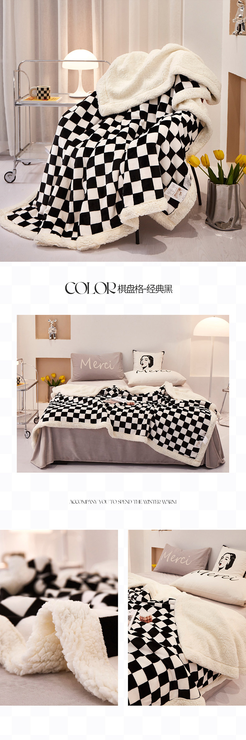 欧伊语ins风棋盘格纯色牛奶绒毛毯双层加厚羊羔绒毯