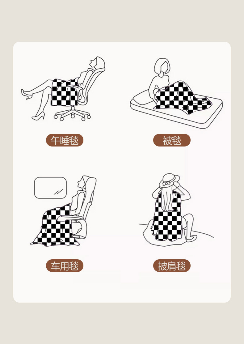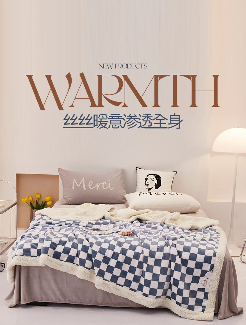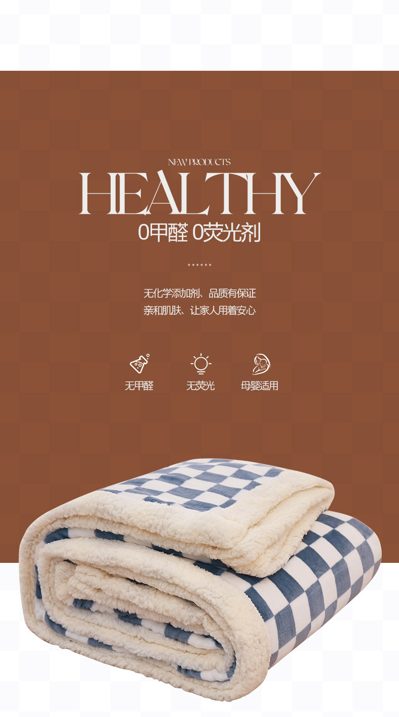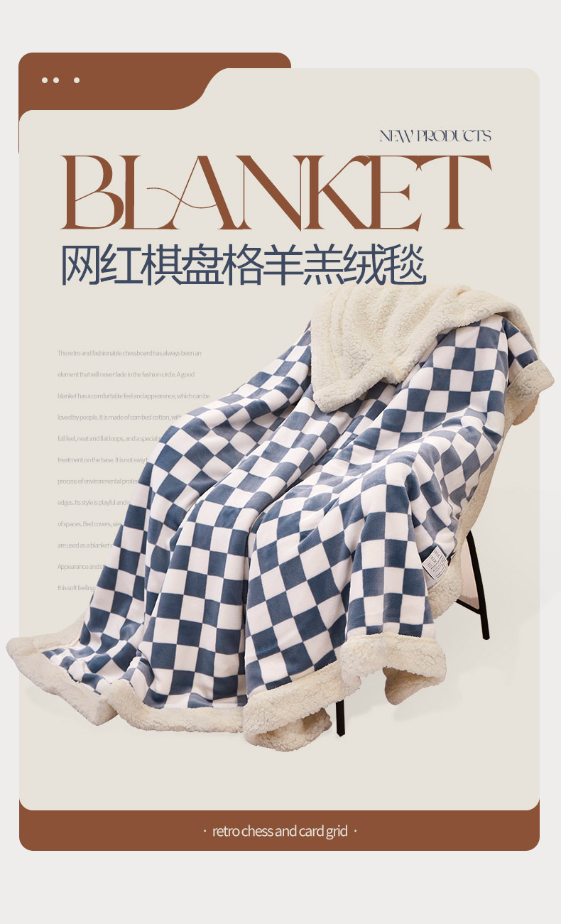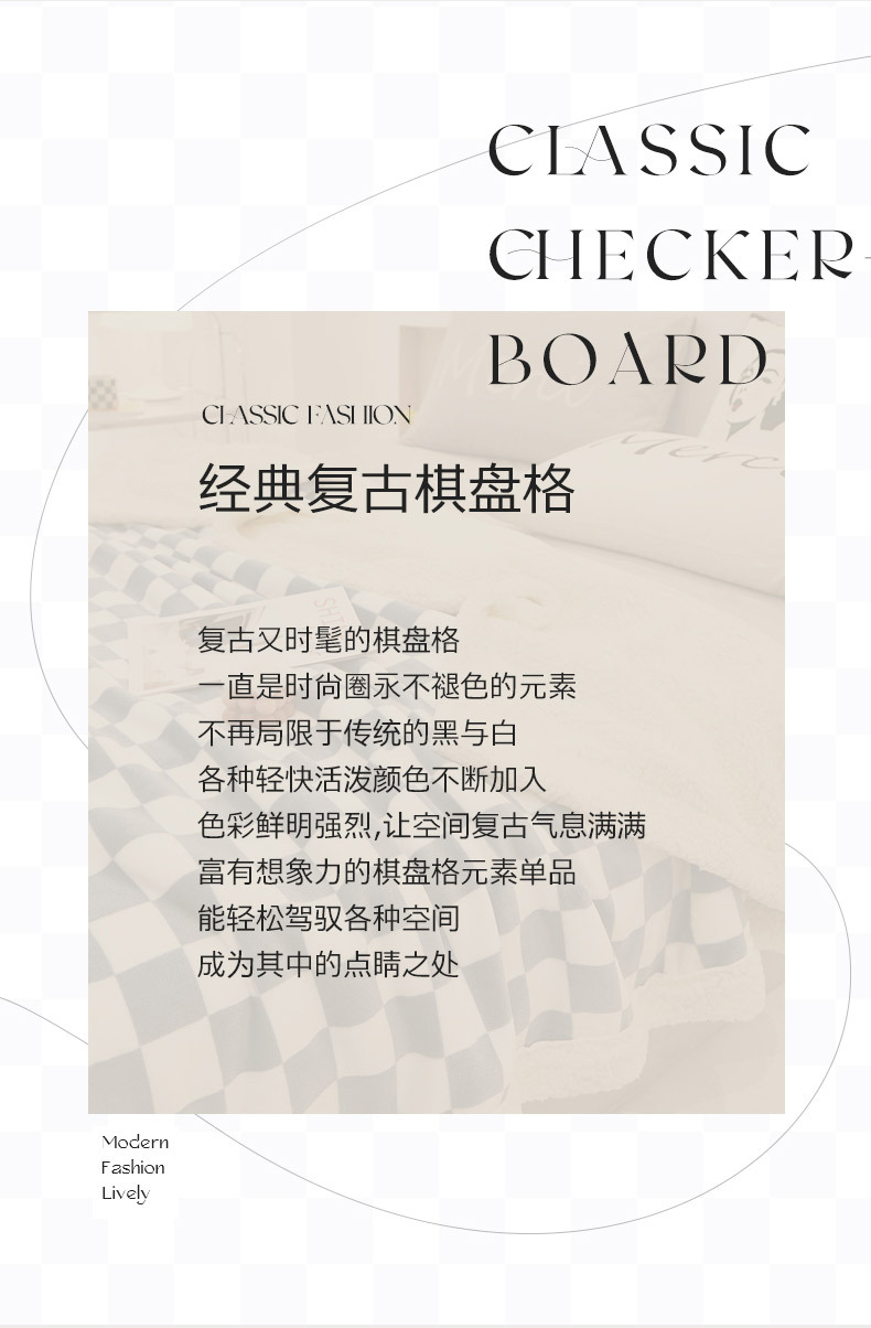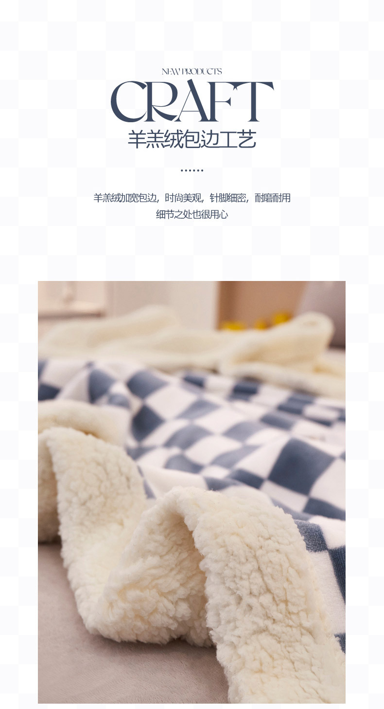 欧伊语ins风棋盘格纯色牛奶绒毛毯双层加厚羊羔绒毯