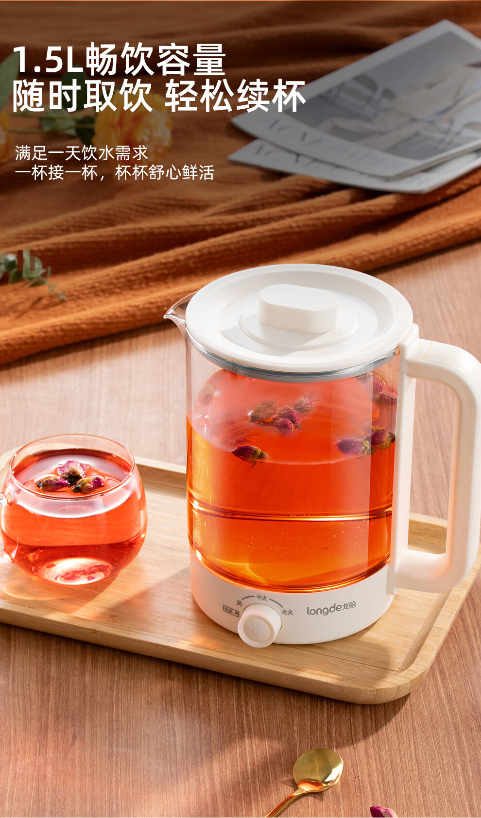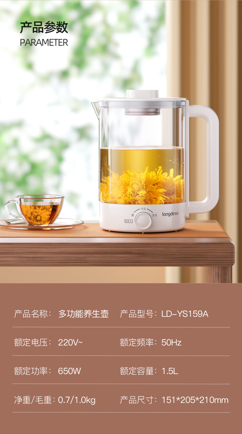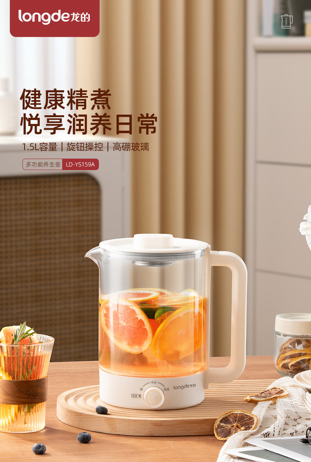 【小家电】龙的longde养生壶多功能办公室煎药壶玻璃电热烧水壶蒸煮煮花茶器 LD-YS159A HF