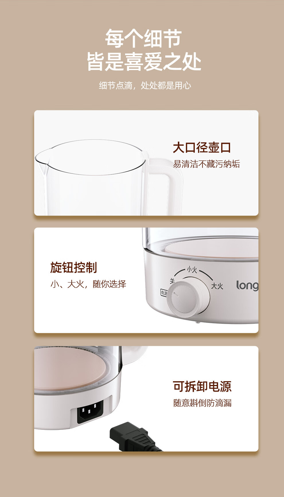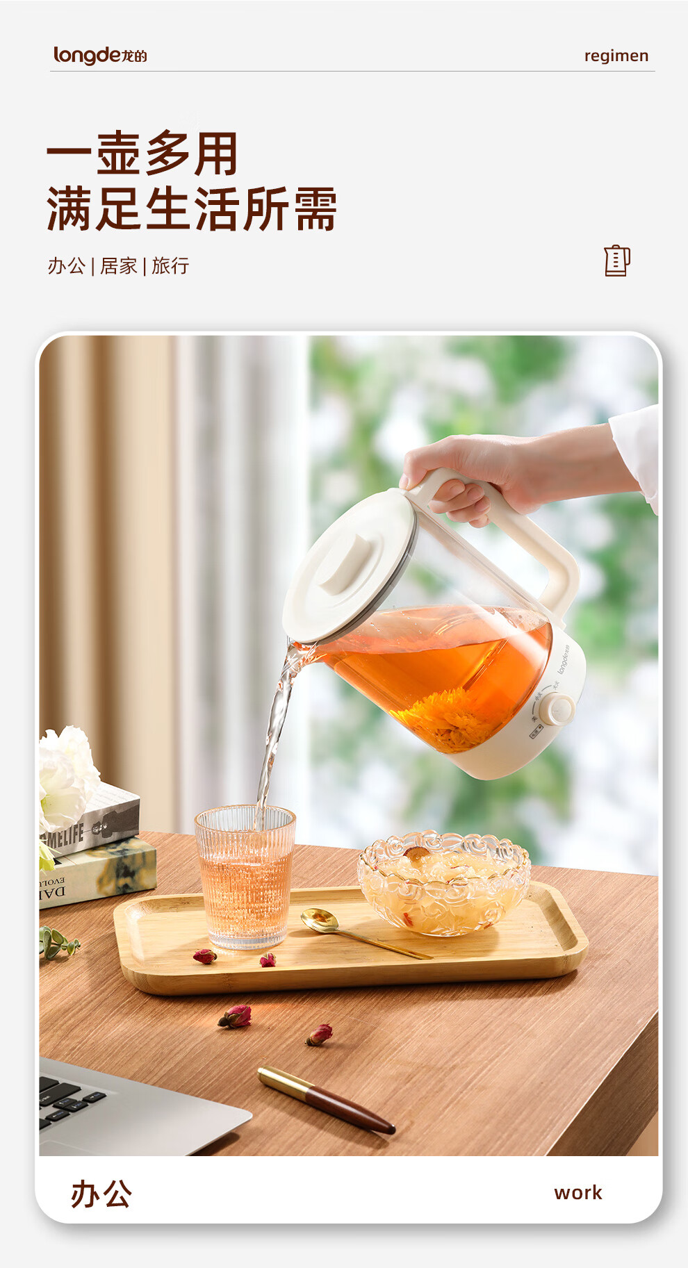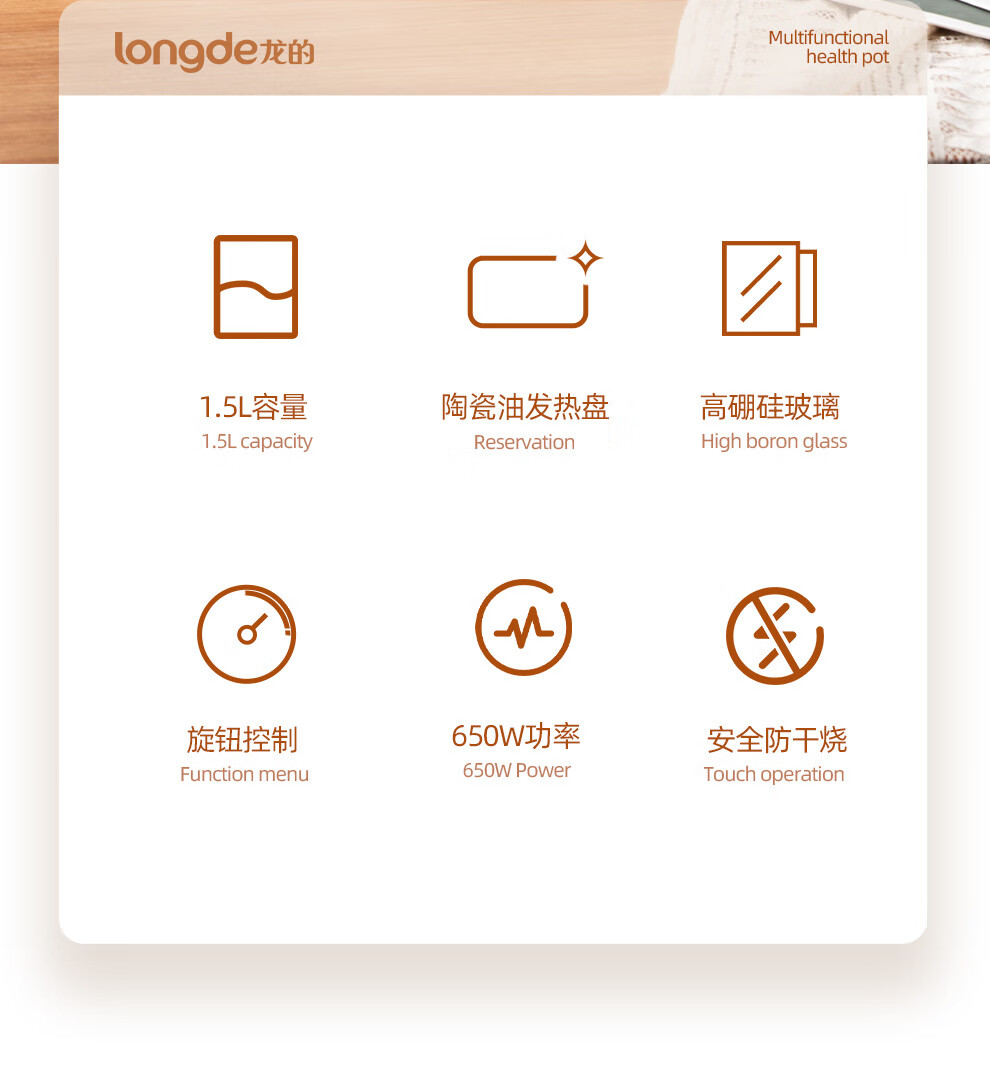【小家电】龙的longde养生壶多功能办公室煎药壶玻璃电热烧水壶蒸煮煮花茶器 LD-YS159A HF