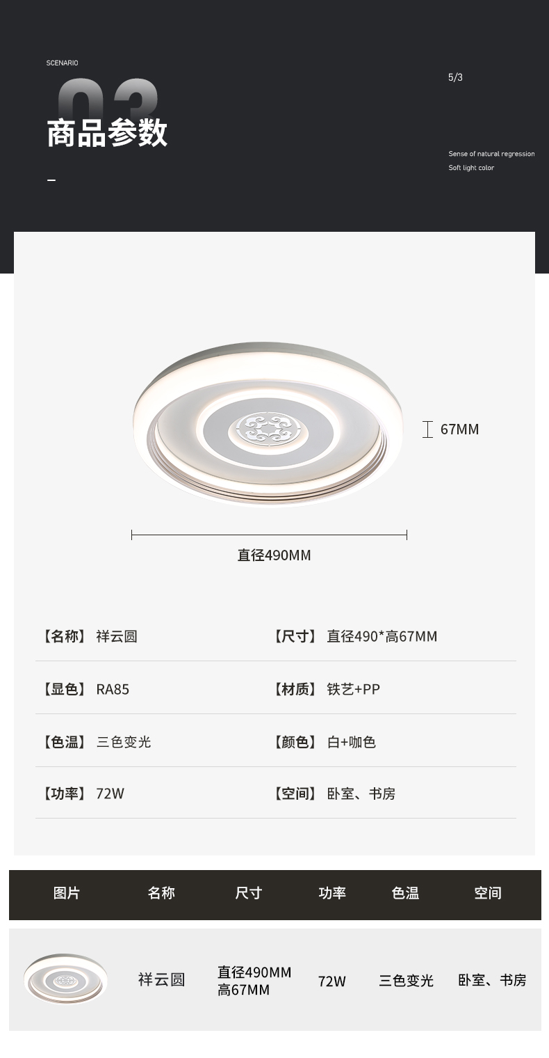 祥云圆-厚板卧室灯