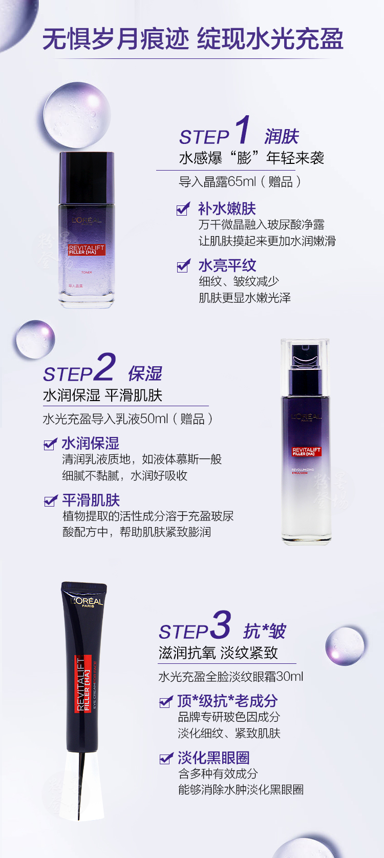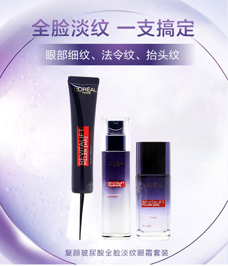 欧莱雅细化淡纹持久保湿紫熨斗眼霜套装