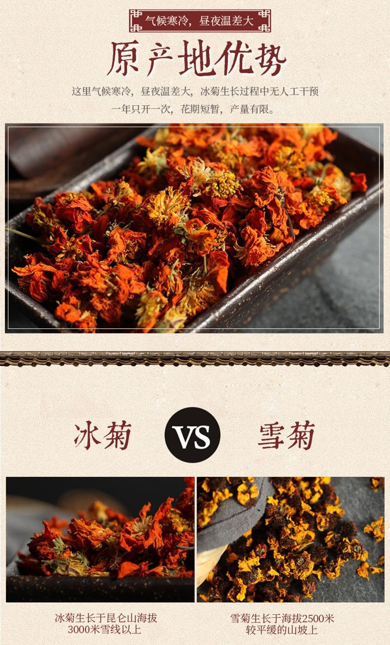 新疆直发 新疆特产西域冰菊新疆火菊天山红菊昆仑山菊花茶无硫熏散装