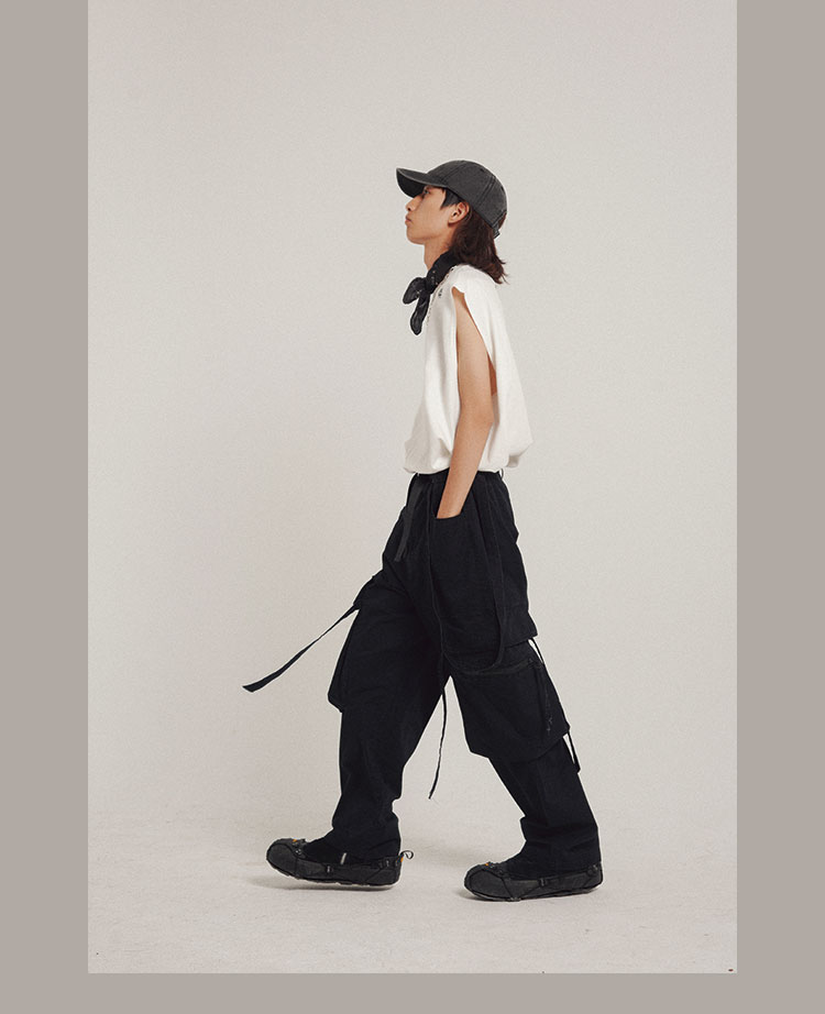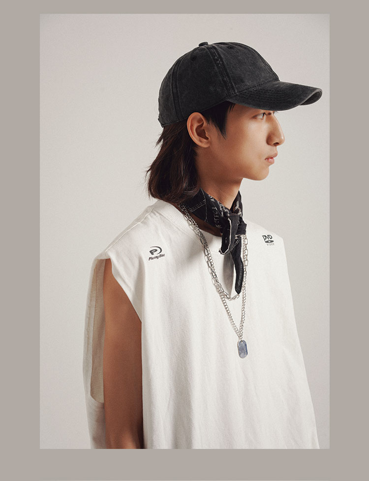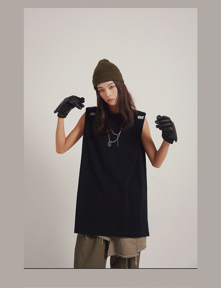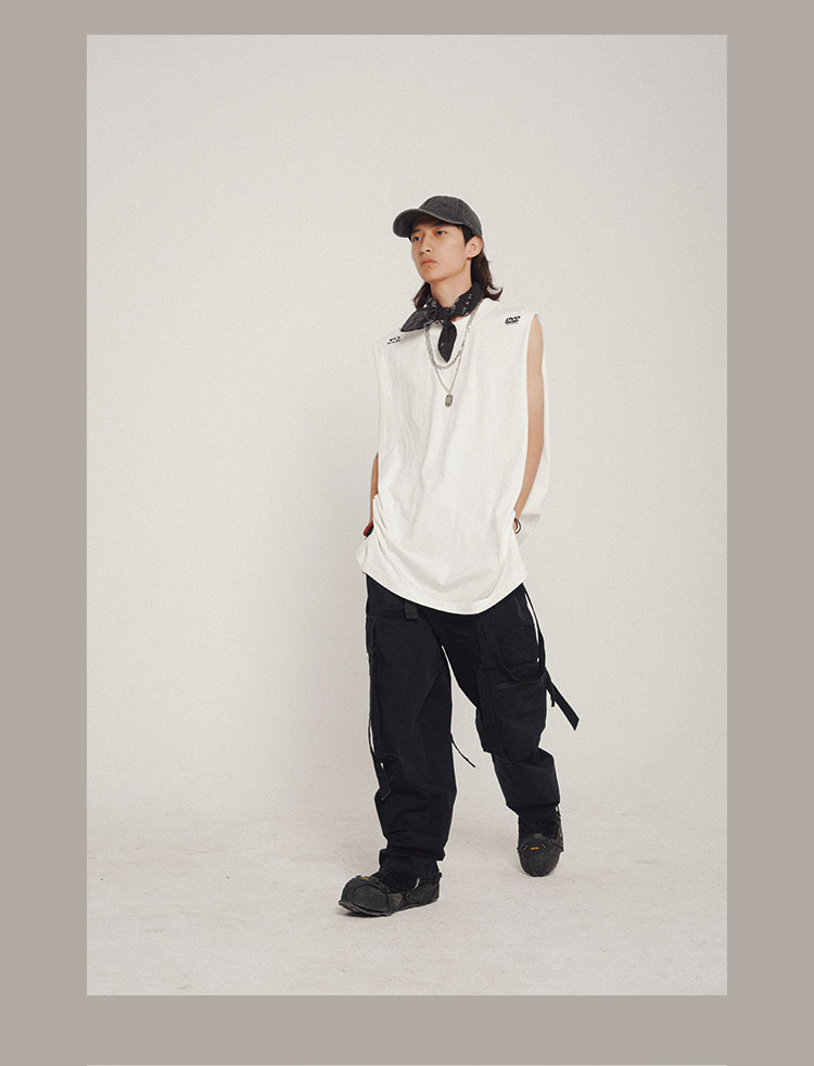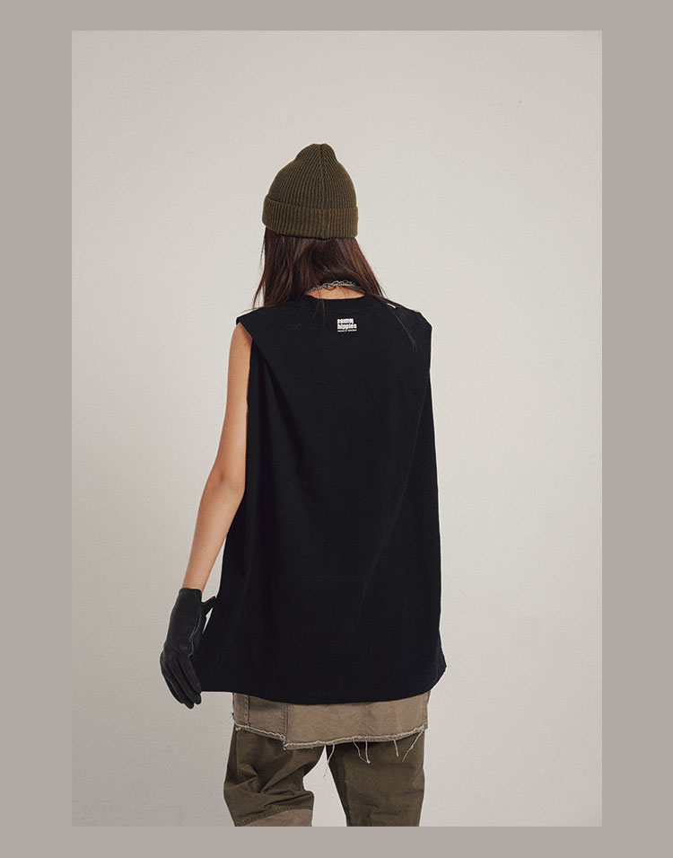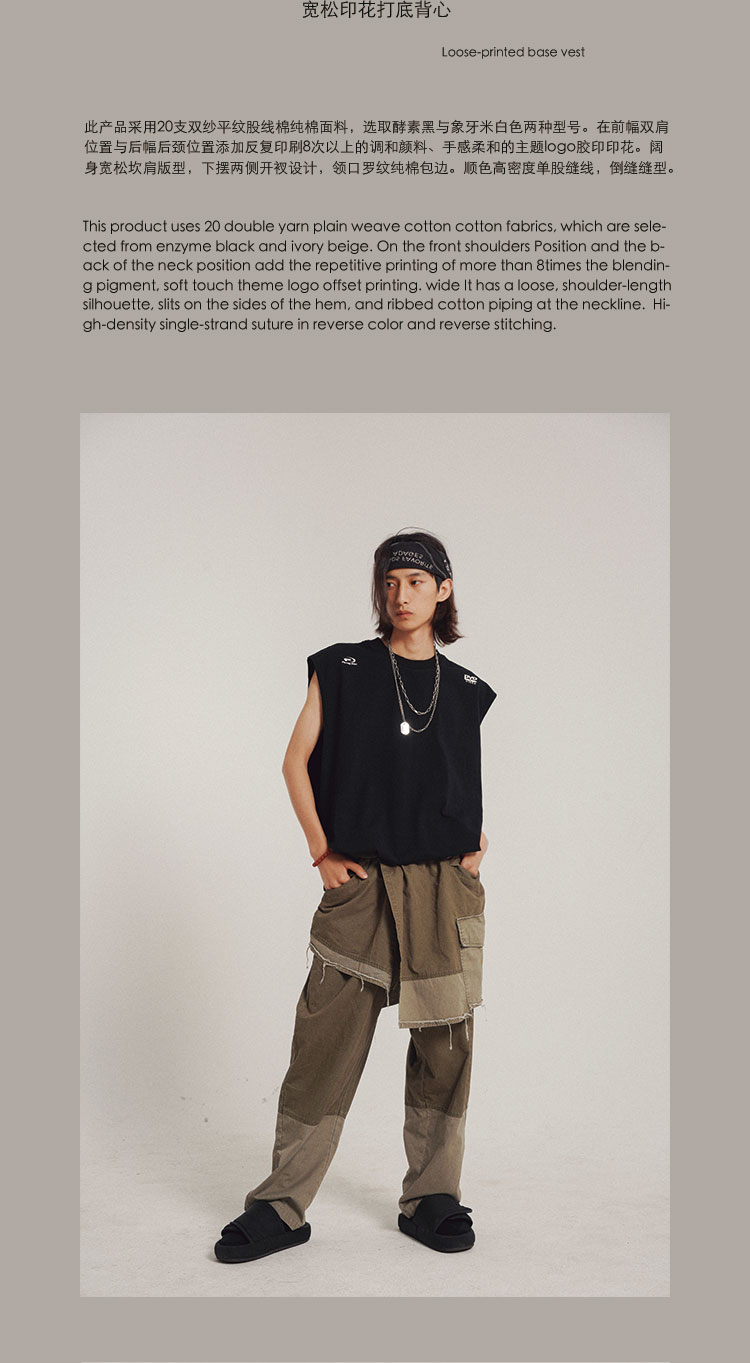 POH 实用搭配基础款字母坎肩国潮宽松百搭开衩主题印花打底背心男