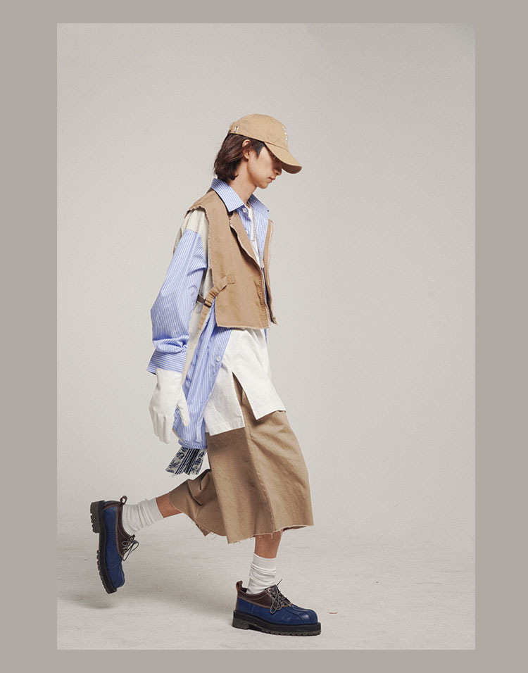 Unawares SS21 多层结构LOGO印花腰衬百褶中长裙
