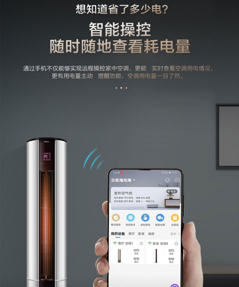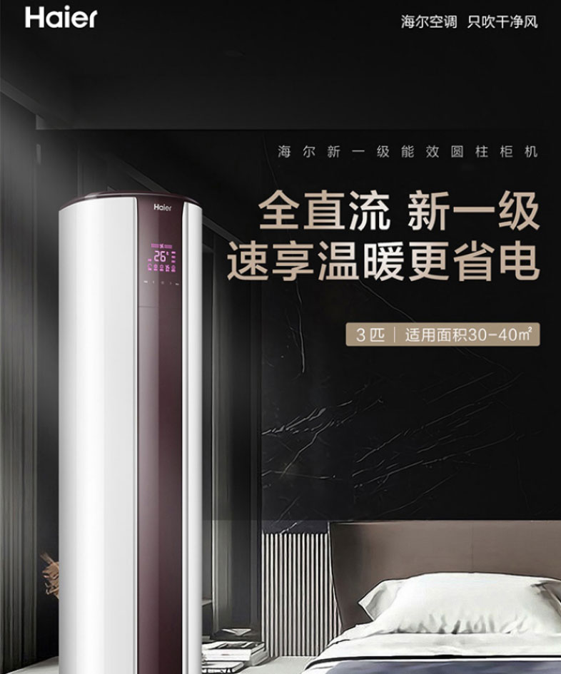 海尔柜式空调3匹 变频家用空调柜机 自清洁KFR-72LW/07EDS81U1