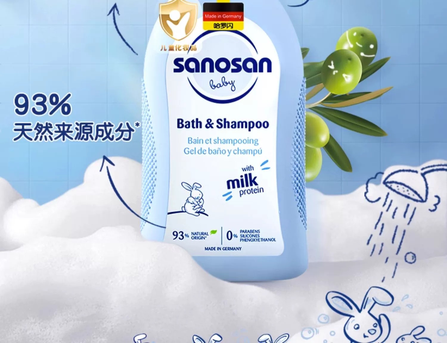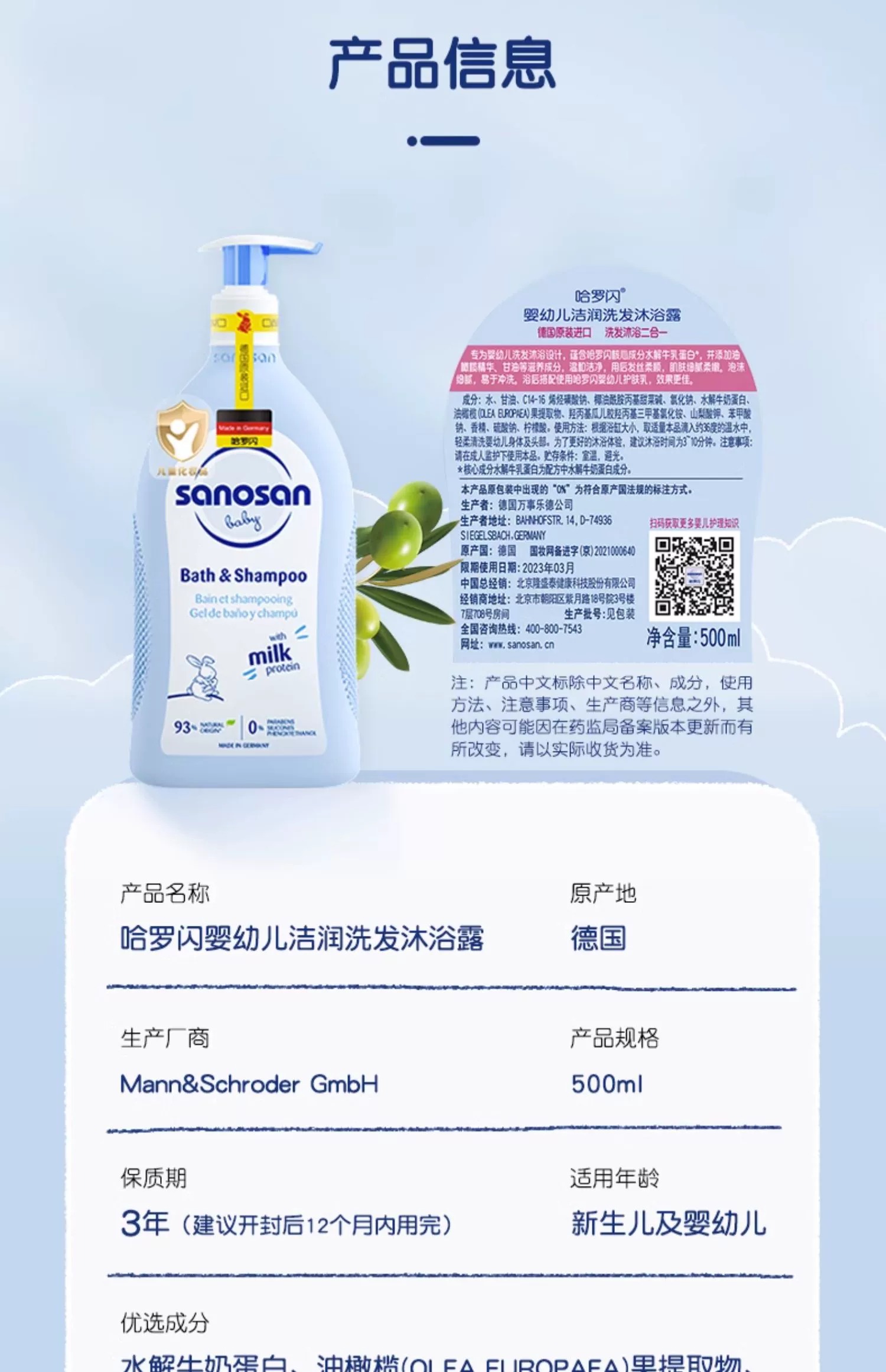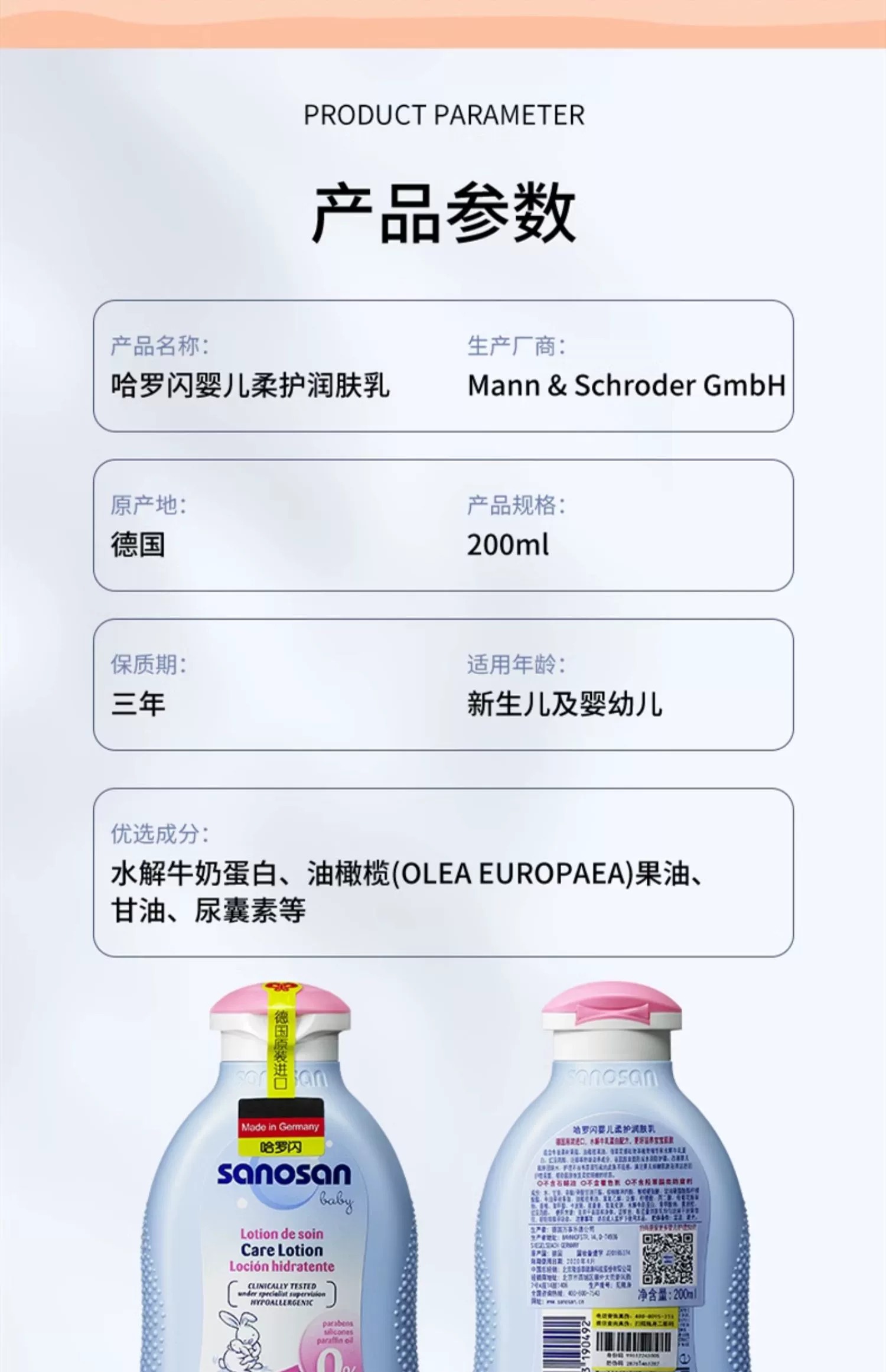 【中欧班列】德国哈罗闪婴幼儿洁润洗发沐浴露 原装进口婴儿润肤乳宝宝身体乳冬季 500ml/200ml/50ml/瓶