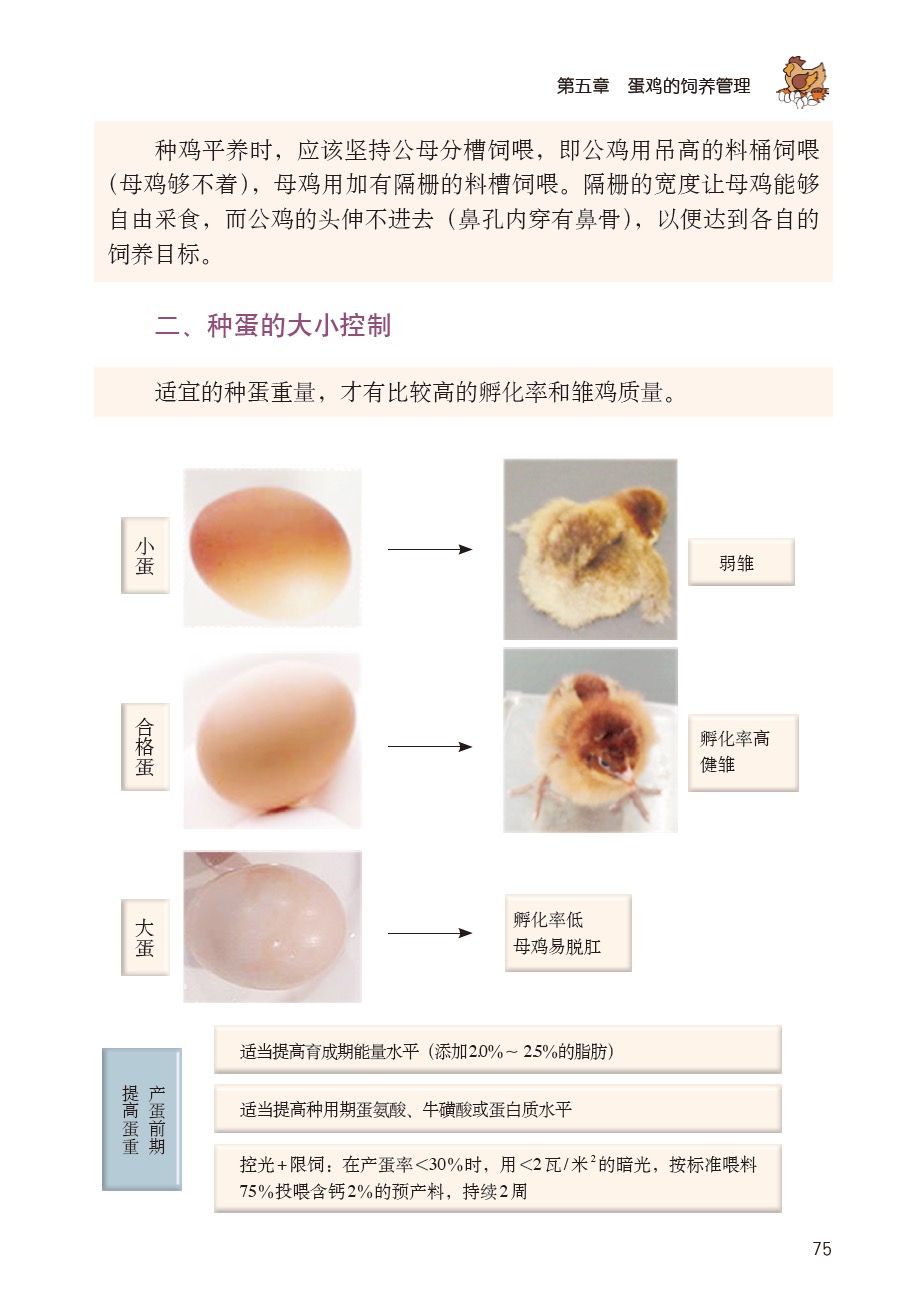 本书主要介绍蛋鸡标准化规模养殖全过程的关键技术和要点,包括蛋鸡场规划与建设、环境卫生与生物安全、蛋鸡的品种与繁殖技术、饲料与日粮配制、蛋鸡的饲养管理技术规程、蛋鸡常见疾病的诊断与防治、蛋鸡场经营管理、蛋鸡的主要产品及初加工等内容,通过简练、易懂、富有趣味性的文字,精选简洁、真实的图片近900幅,以彩色图谱的形式,直观表现标准化规模养殖流程,可操作性强,一学就会,给蛋鸡养殖场及相关技术人员提供简单、实用的技术参考。也可作为扶贫攻坚项目辅助资料。