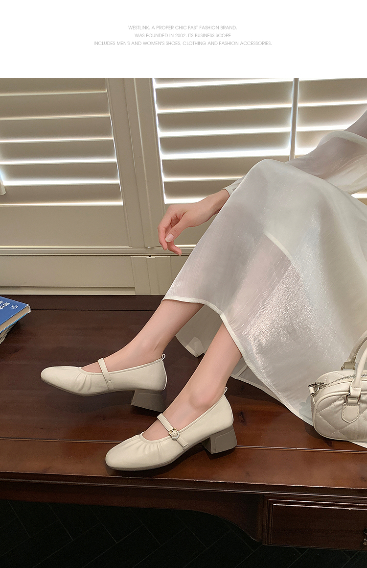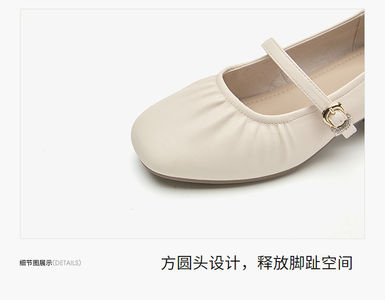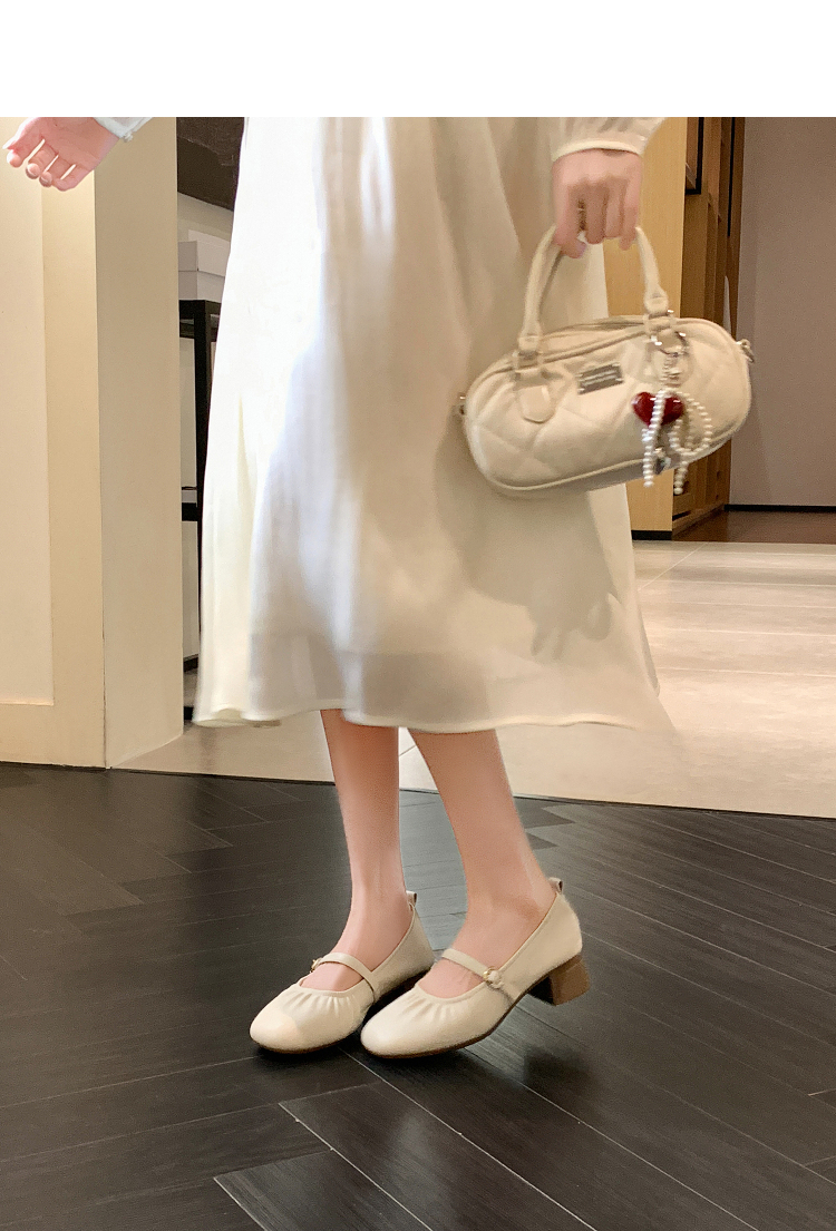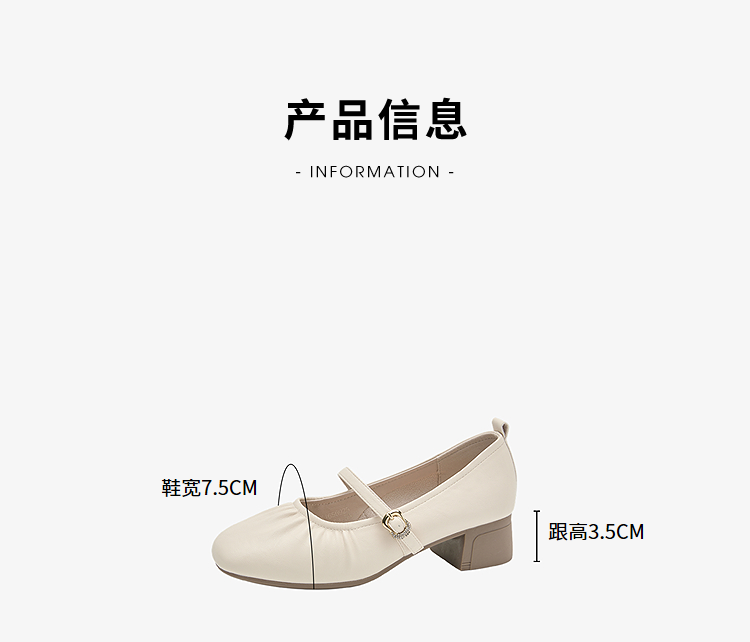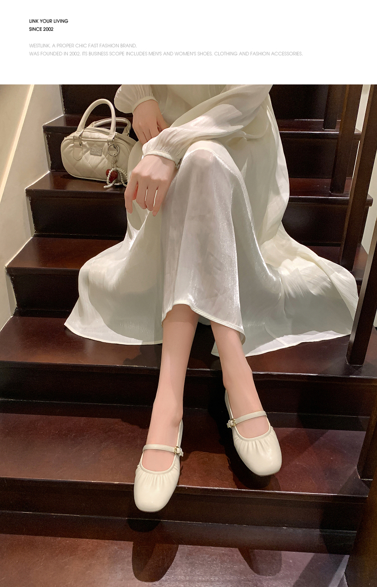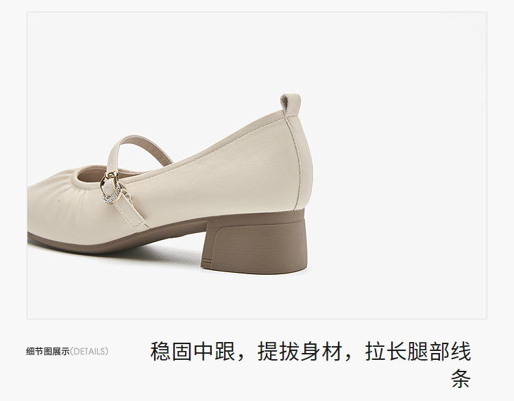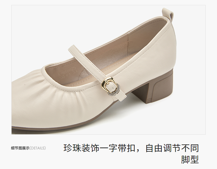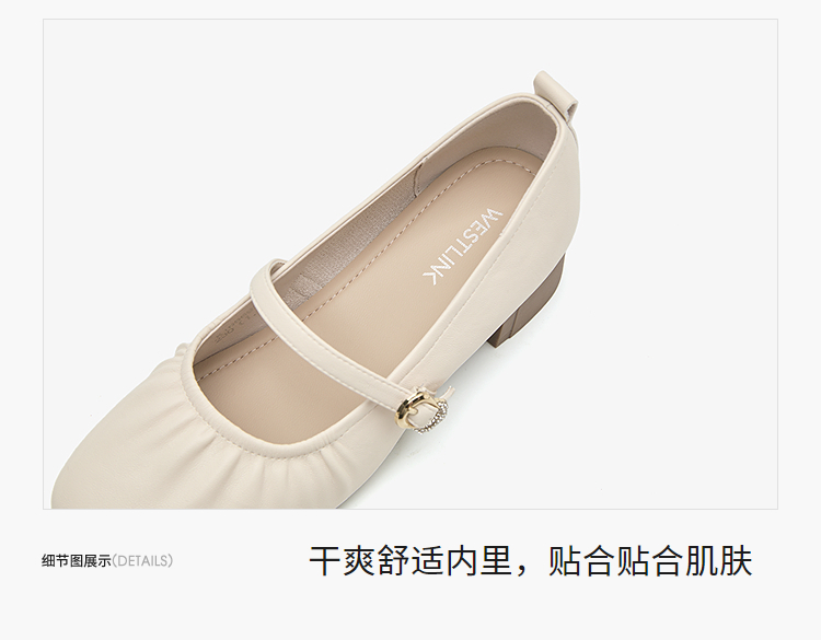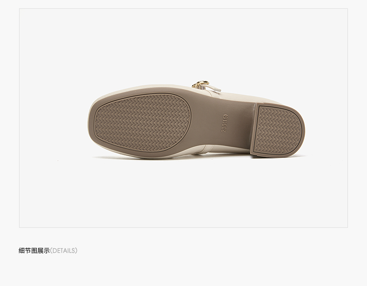 西遇中跟单鞋女新款秋季法式小香风粗跟小皮鞋白色玛丽珍鞋K1656952