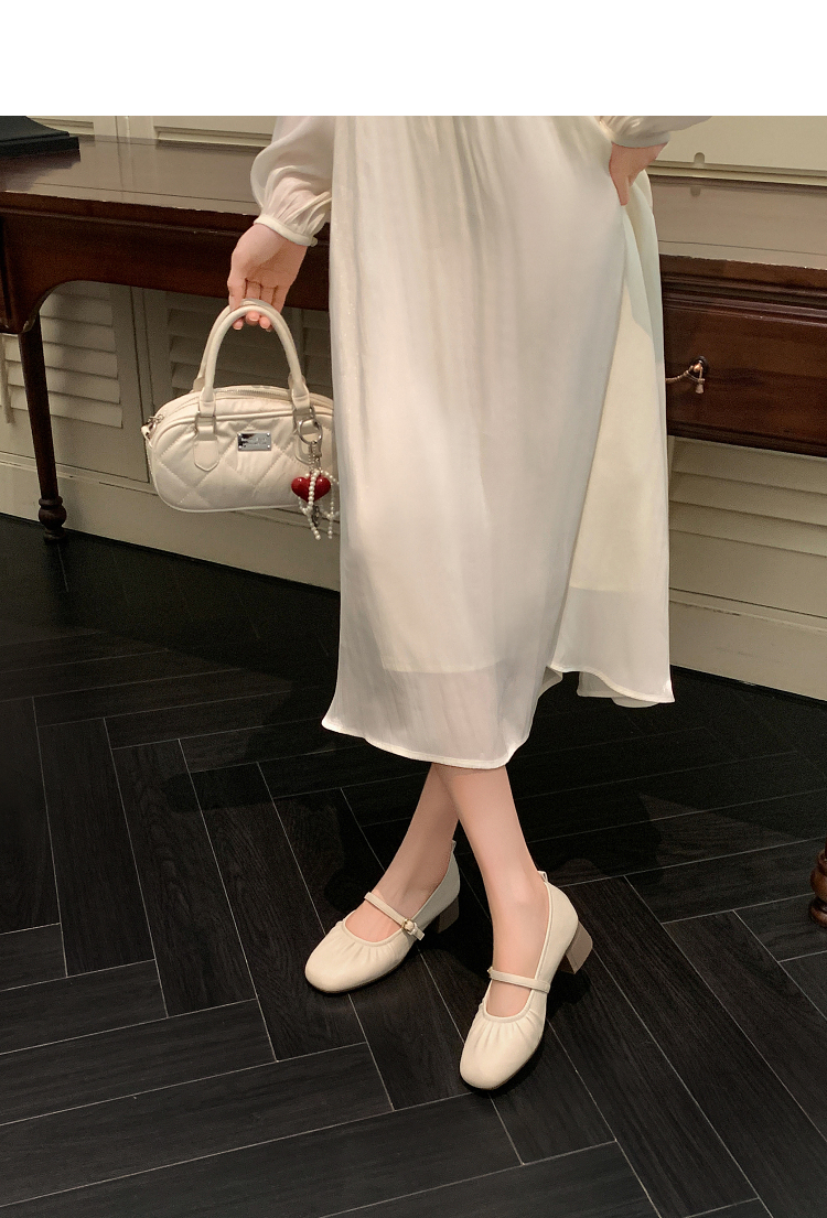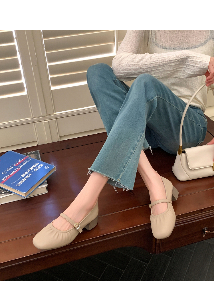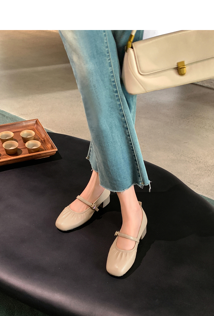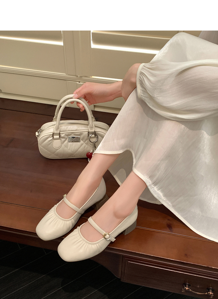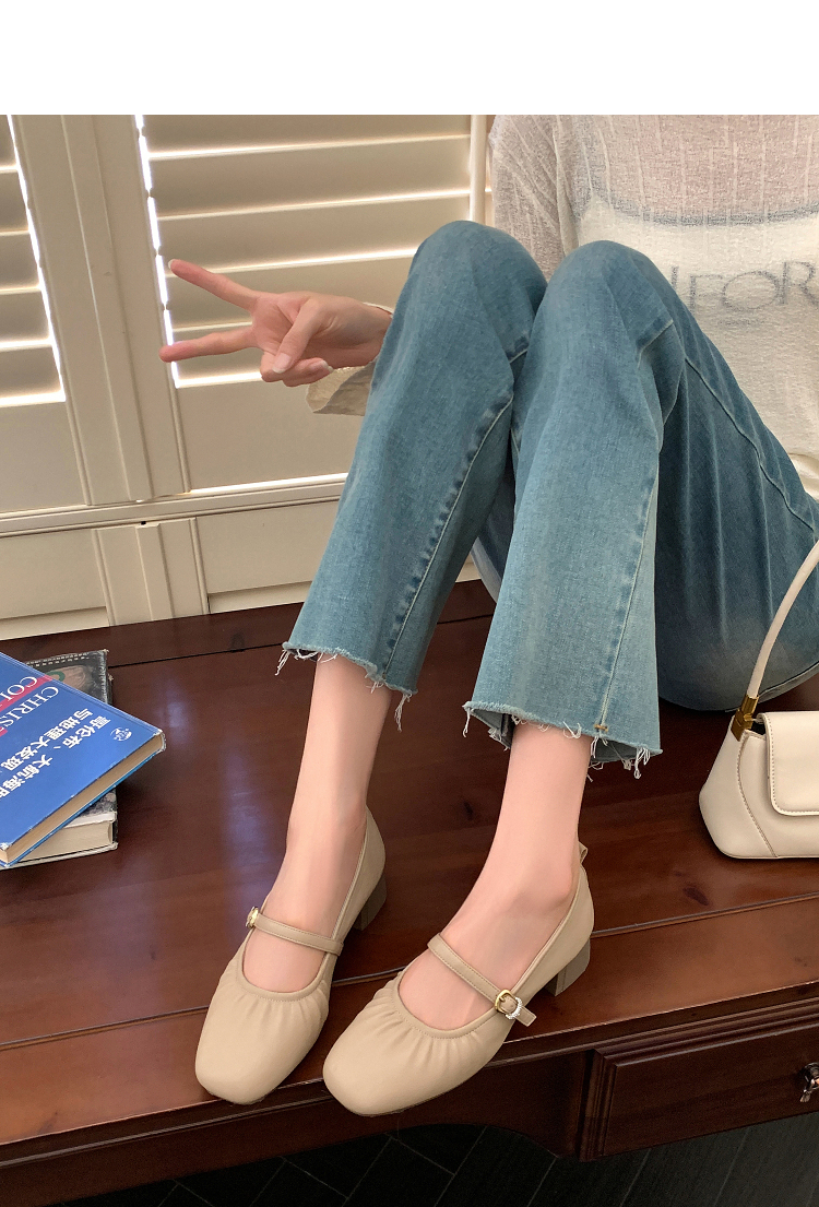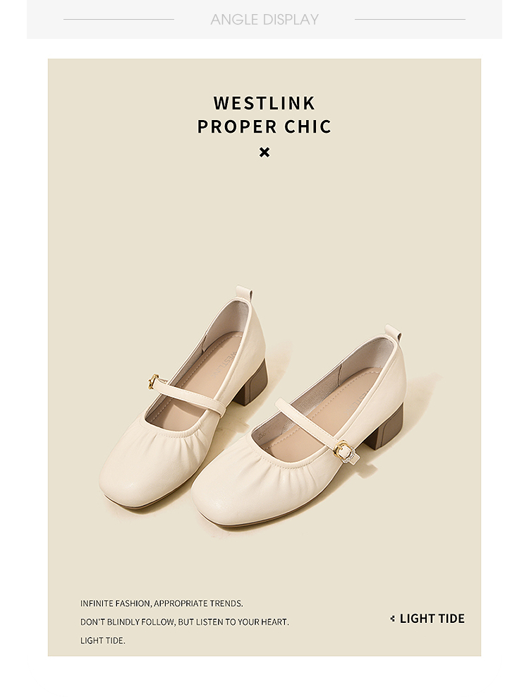 西遇中跟单鞋女新款秋季法式小香风粗跟小皮鞋白色玛丽珍鞋K1656952