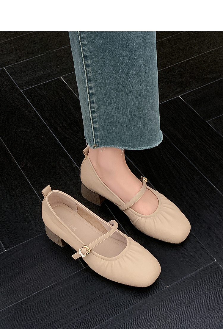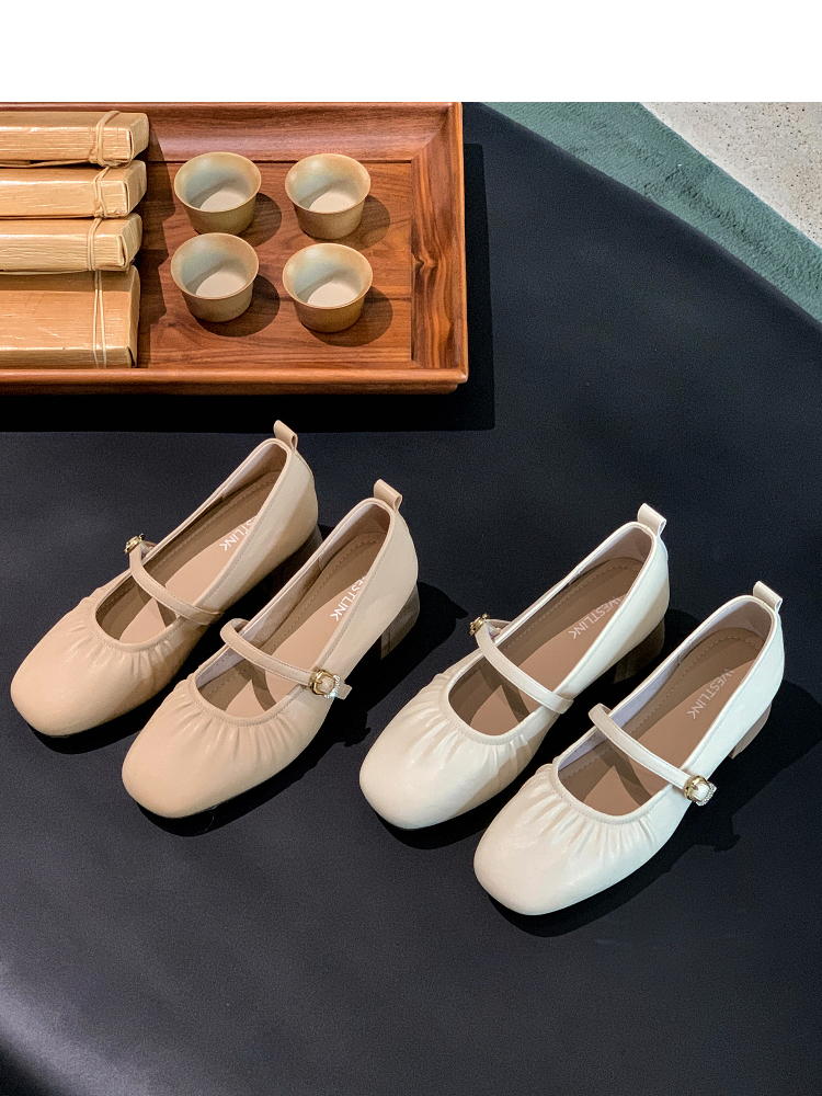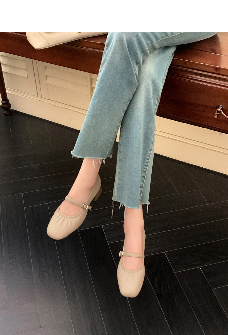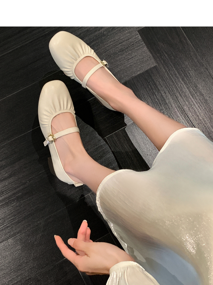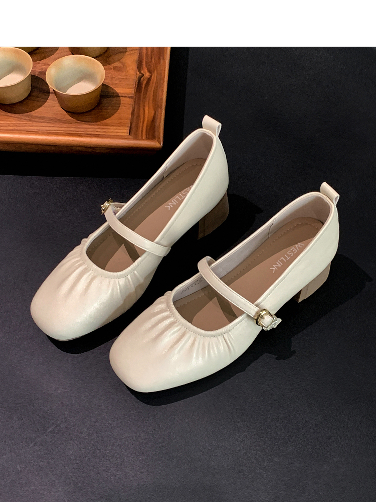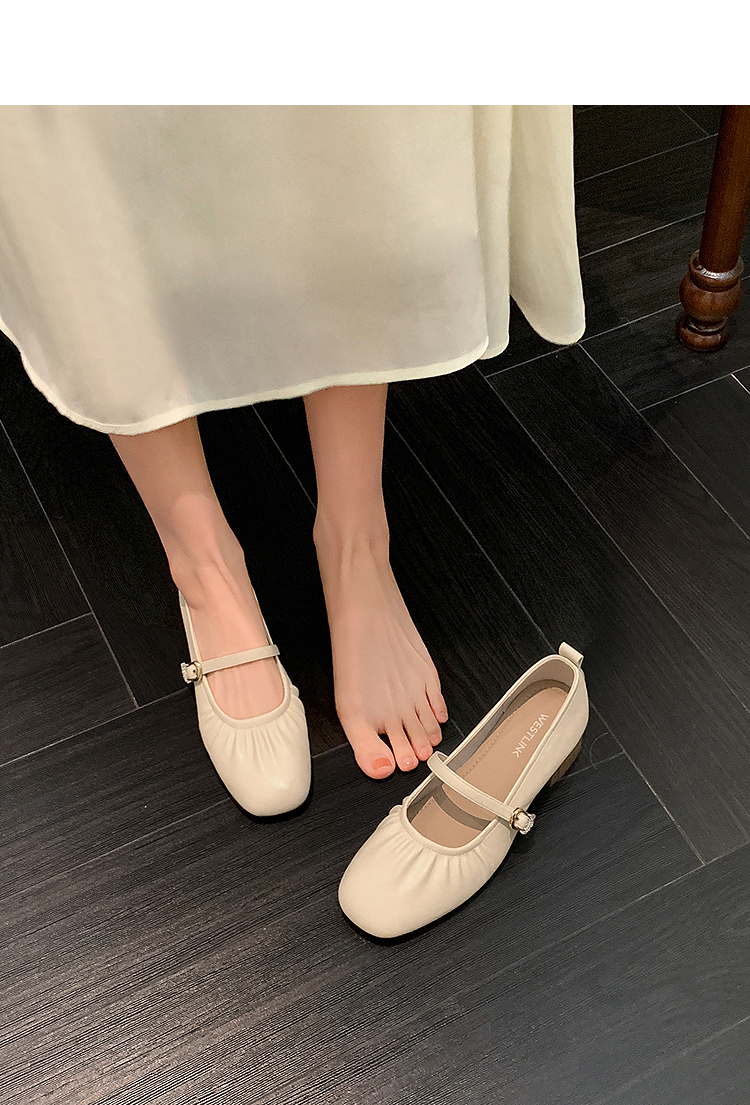 西遇中跟单鞋女新款秋季法式小香风粗跟小皮鞋白色玛丽珍鞋K1656952