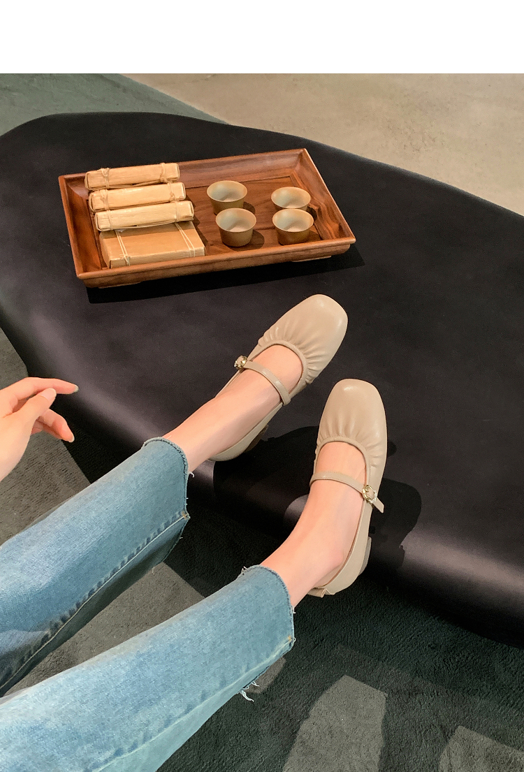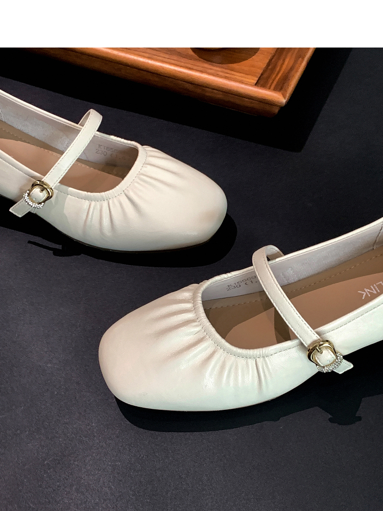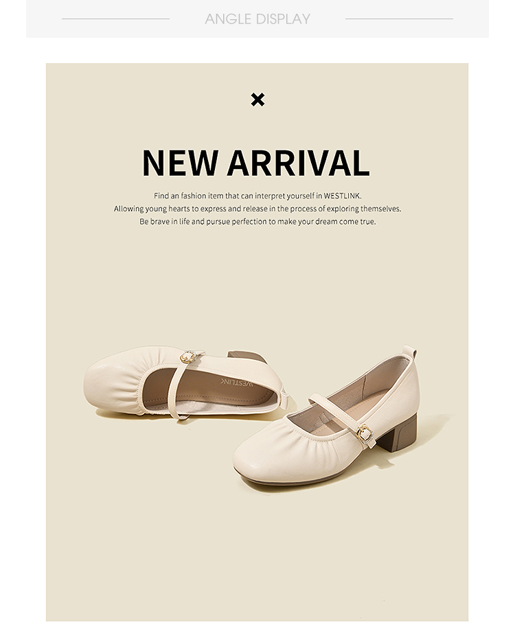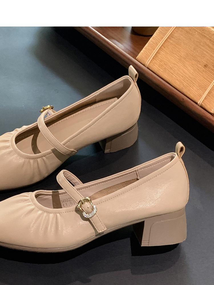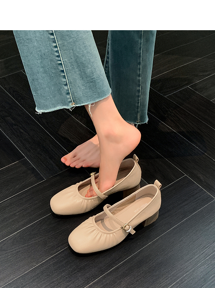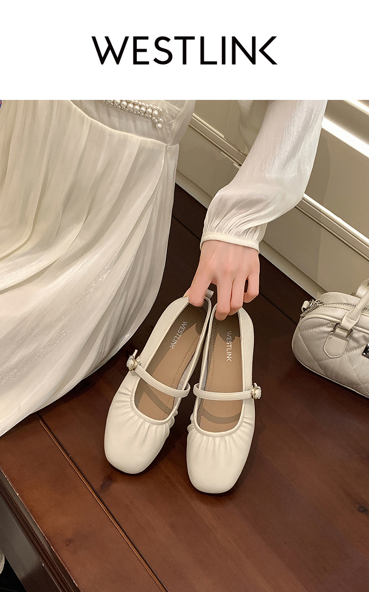 西遇中跟单鞋女新款秋季法式小香风粗跟小皮鞋白色玛丽珍鞋K1656952