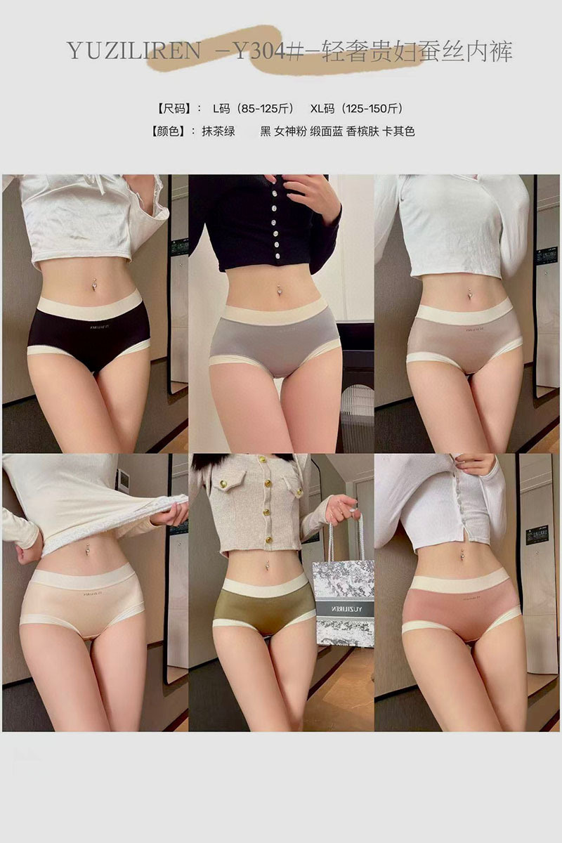 【一盒装6条!】轻奢贵妇蚕丝内裤 女高弹力大码中腰绸缎面蕾丝养护三角裤滑面