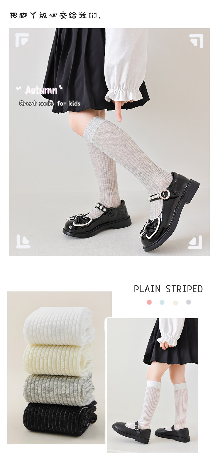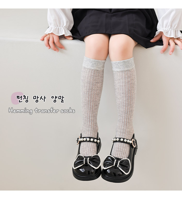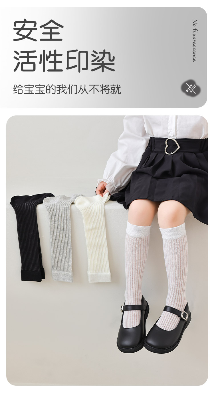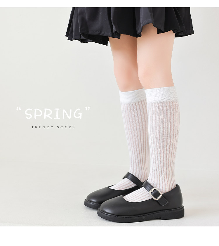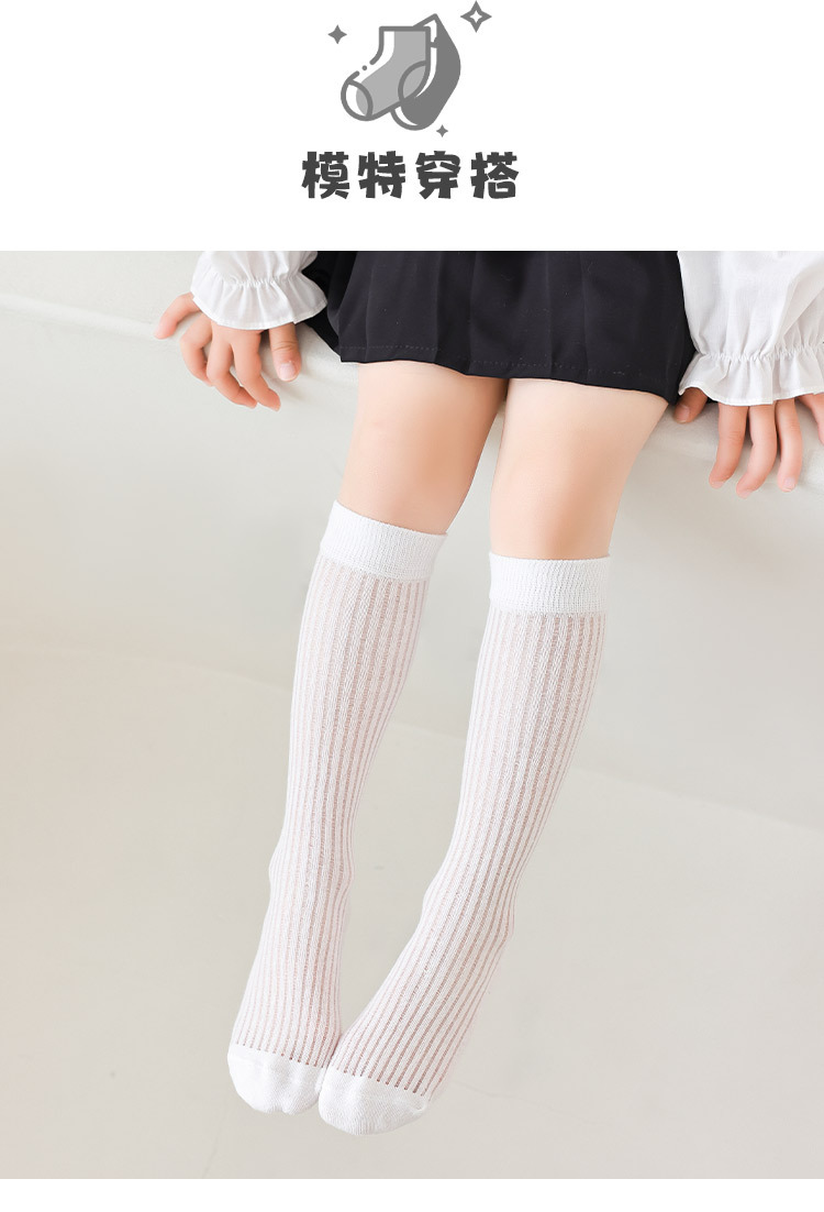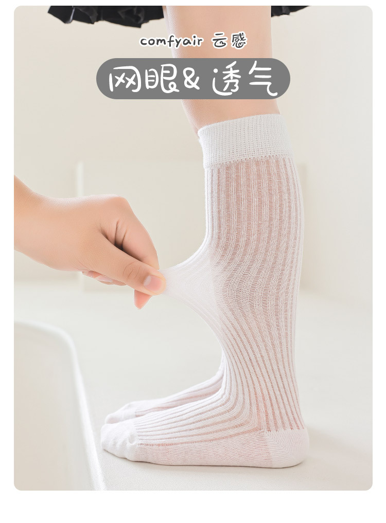 【优质新疆棉!2对装】经典云感优质袜 儿童袜子 春夏薄款A类女童经典竖条小腿袜 学生网眼舒适透气长筒袜