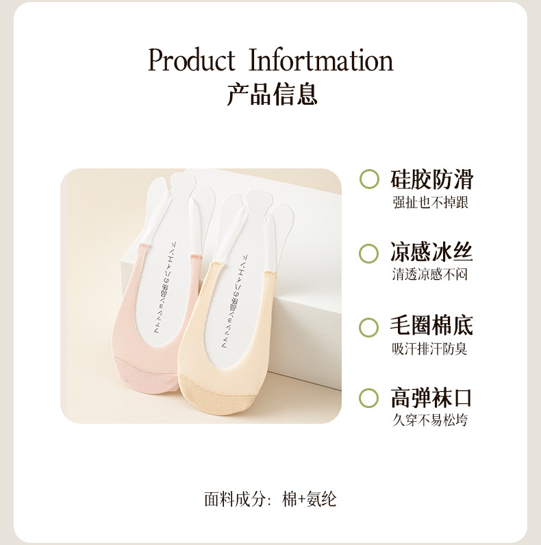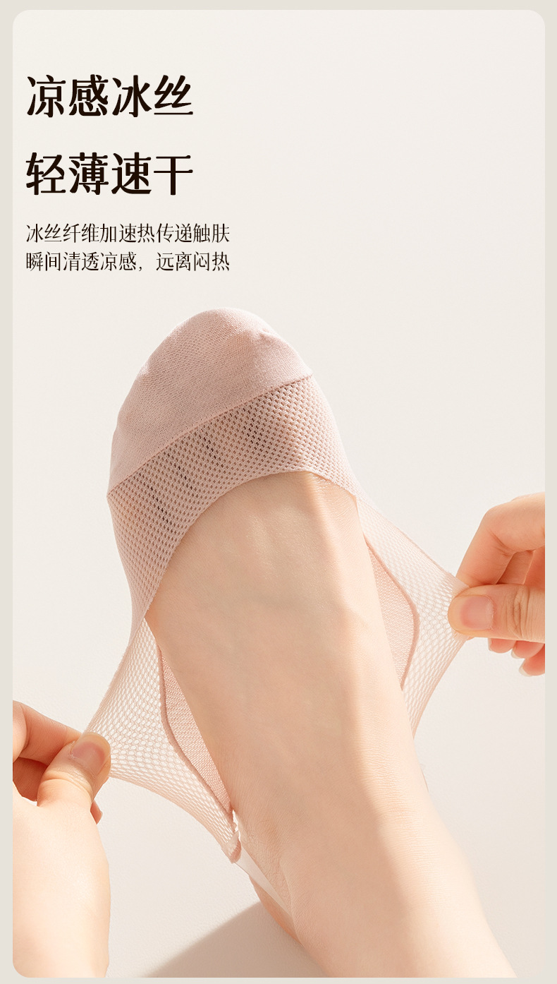 「7双装!数套可选」船袜女夏季薄款纯棉底防滑不掉跟半掌吊带冰丝隐形浅口高跟鞋袜子配饰