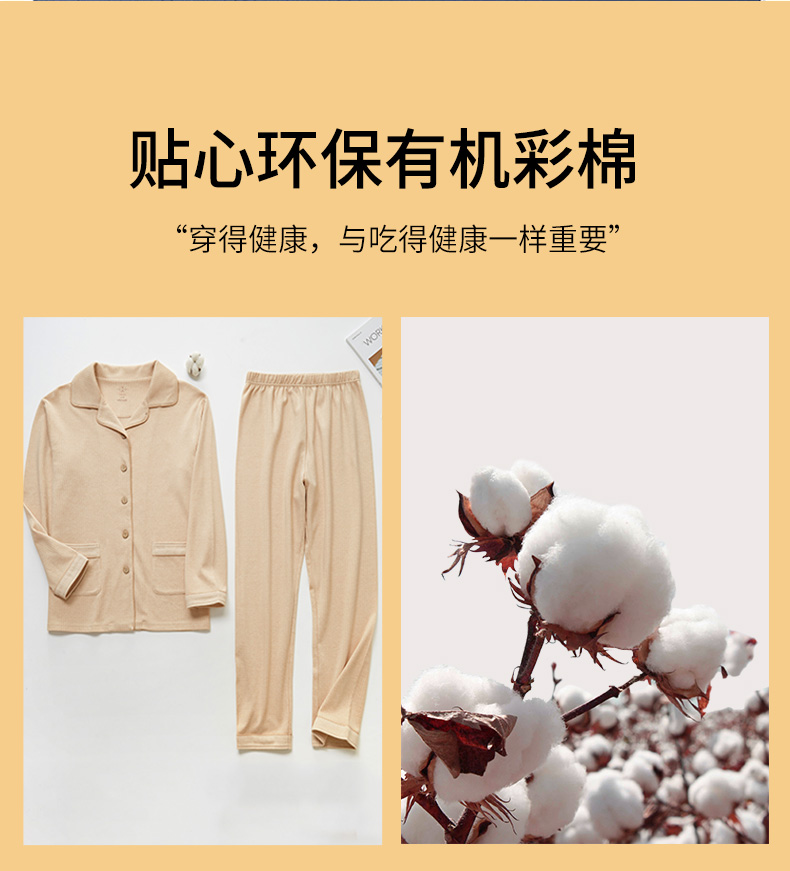 素道有机彩棉 新款女家居服套装 纯棉长袖 秋冬保暖女士睡衣【京东快递送货上门】