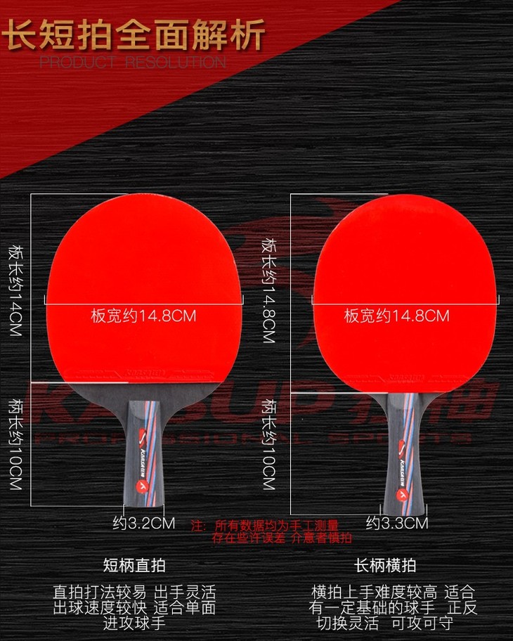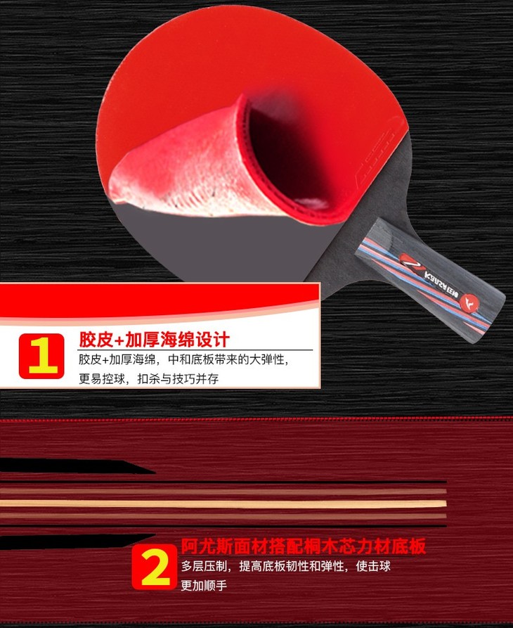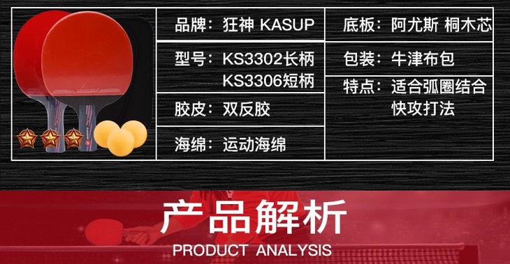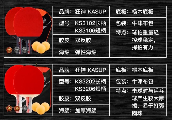狂神乒乓球拍 学生初学者 二星单拍横拍直拍ks3206/3202