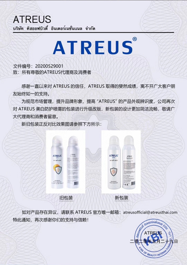 泰国Atreus牛奶防晒喷雾150ml