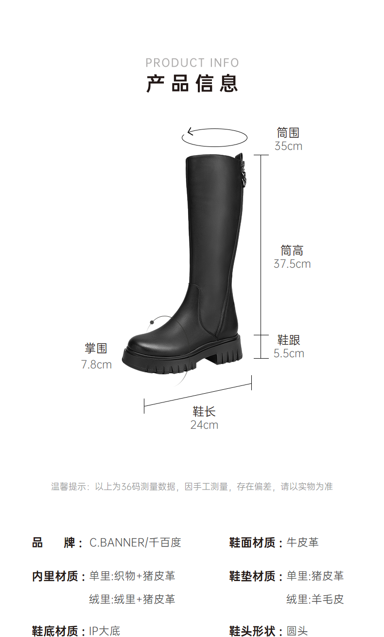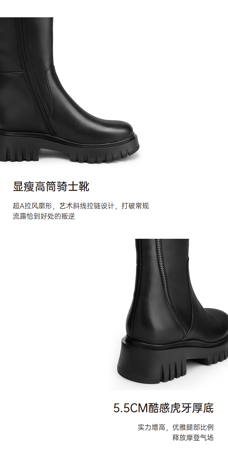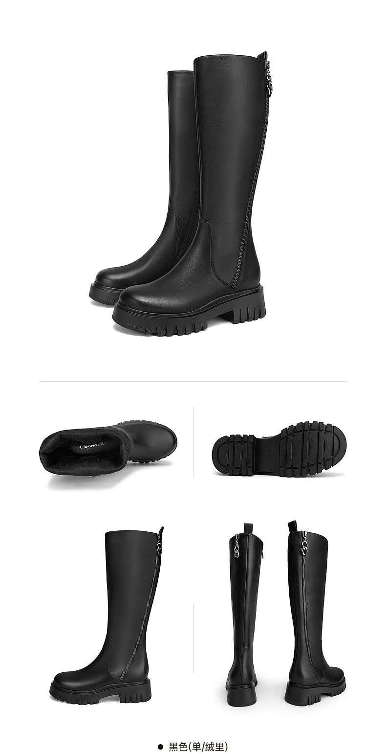 千百度厚底真皮骑士靴女款冬季高筒长靴A24516565