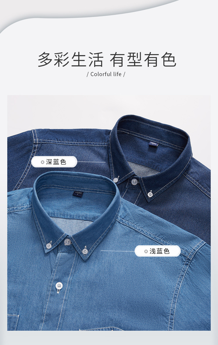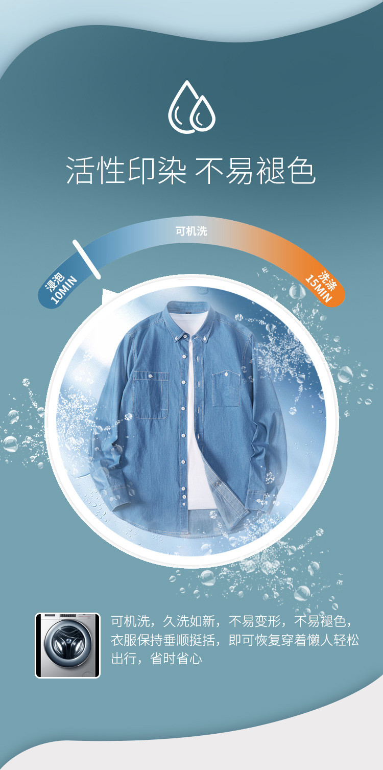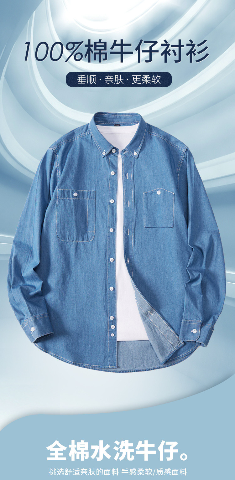 【100棉】罗蒙男士长袖衬衫简约大方舒适百搭牛仔衬衫衬衣男