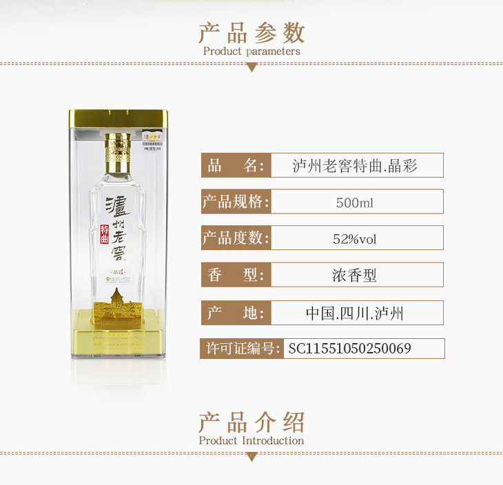 【泸州老窖官方形象店】52度特曲晶彩 500ml*6 整箱 浓香型白酒