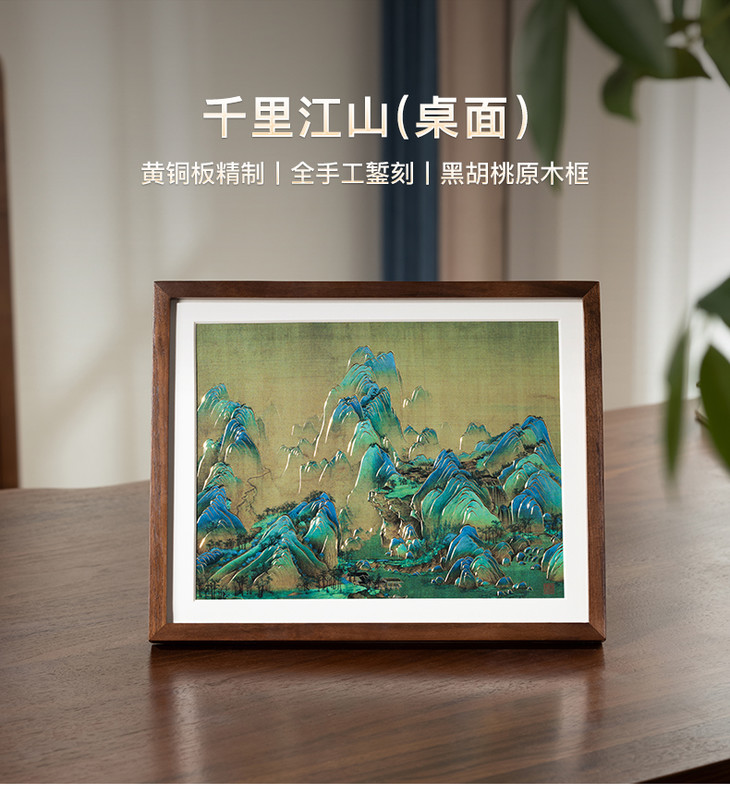 铜师傅 手工錾刻 铜雕画 《千里江山(桌面)》书房办公室装饰画