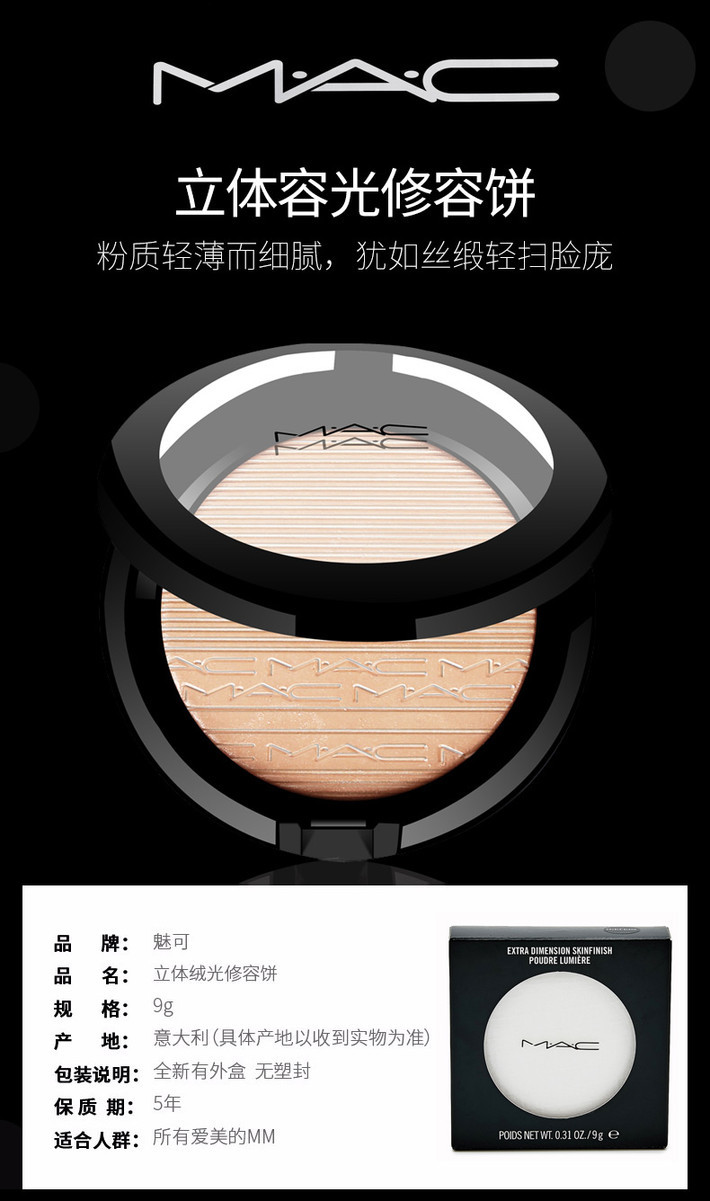 MAC 魅可 生姜高光粉饼 立体绒光修容饼 9g