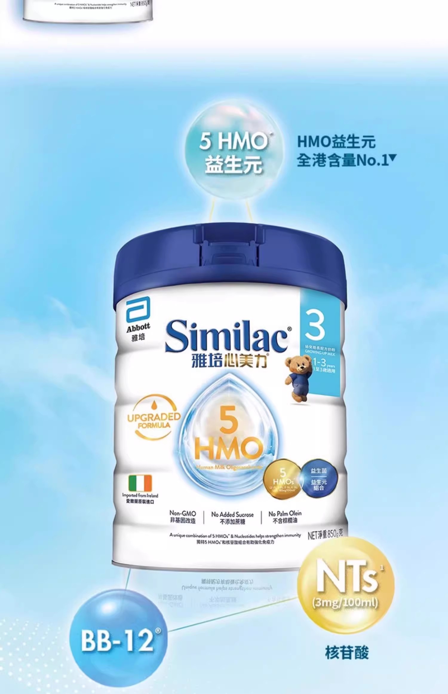 [大罐3段]港港版雅培 Abbott心美力HMO幼儿助长奶粉3段(12-36个月)850克