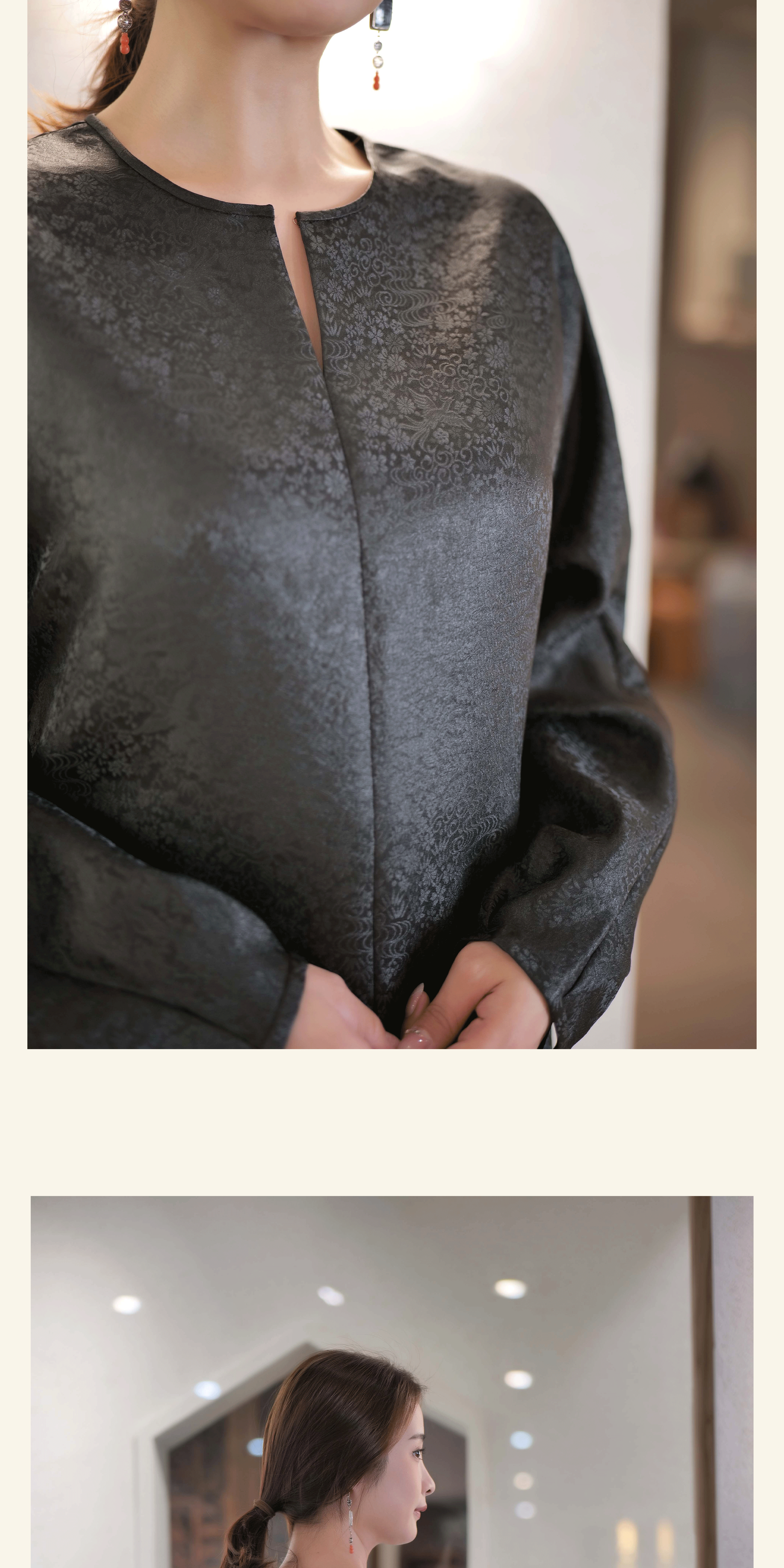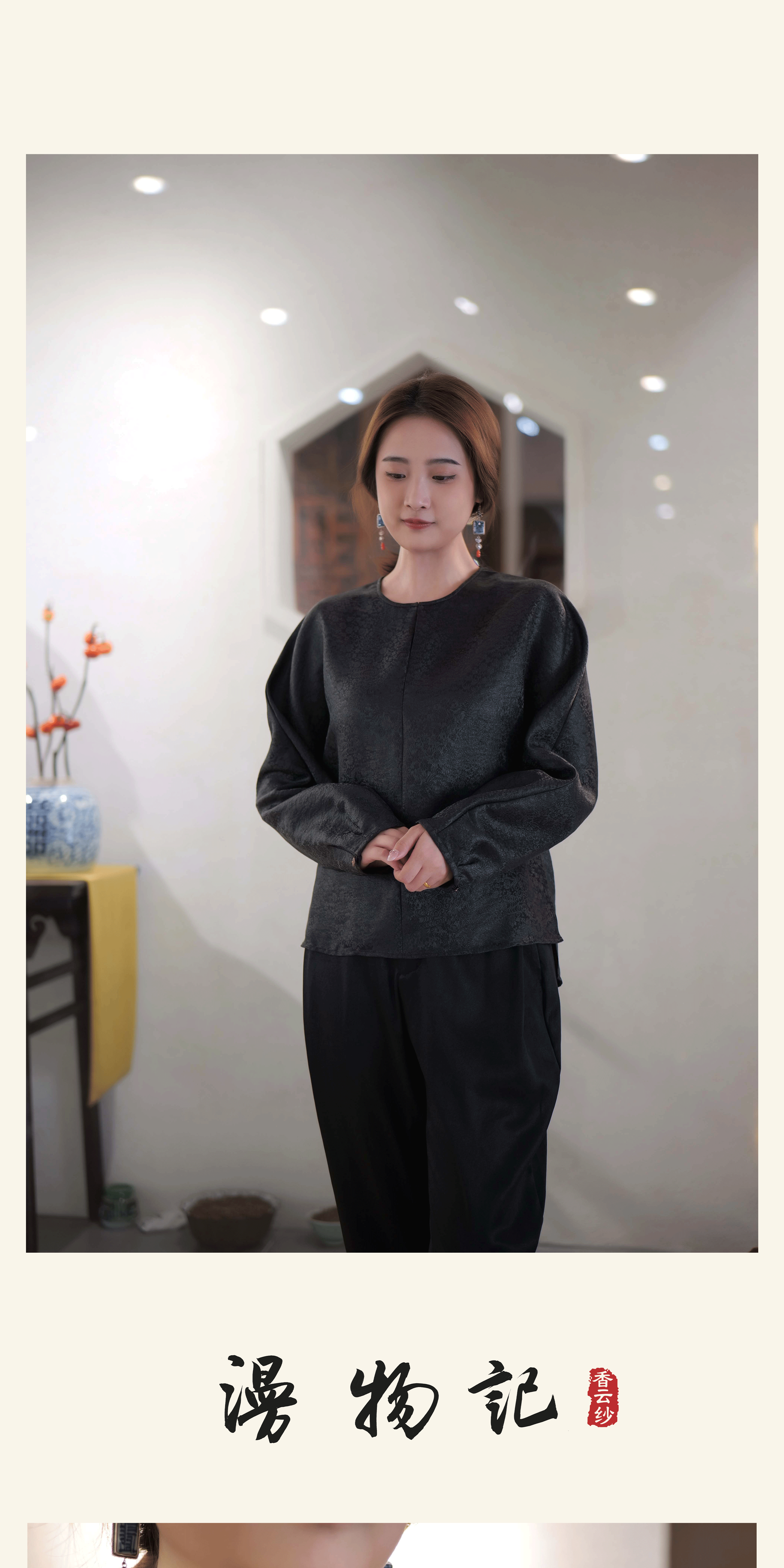 漫物记重磅提花圆领喇叭袖旗袍xys-190