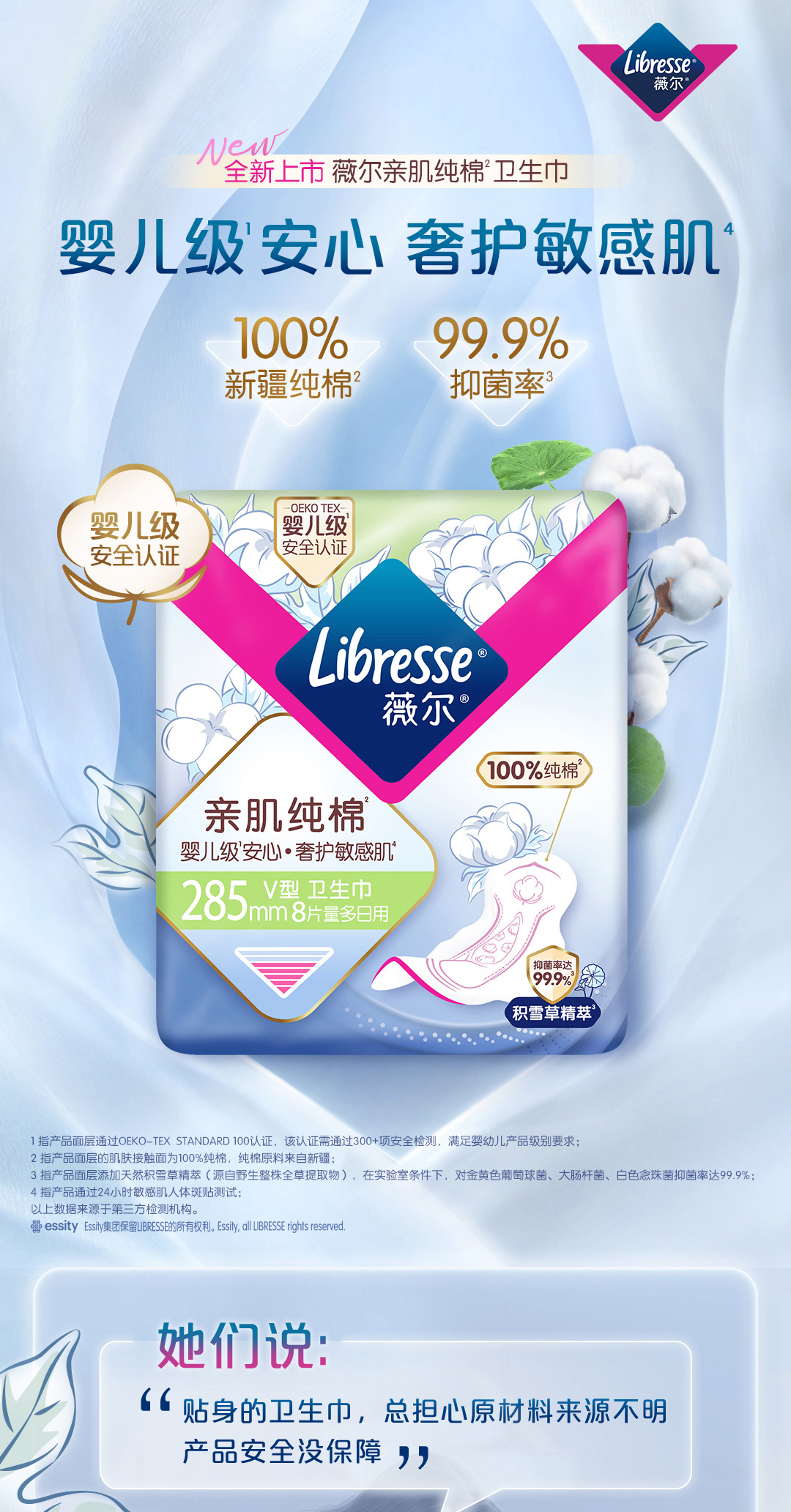 Libresse薇尔亲肌纯棉240日用285日用组套66片 新疆纯棉 积雪草精萃抑菌 防漏