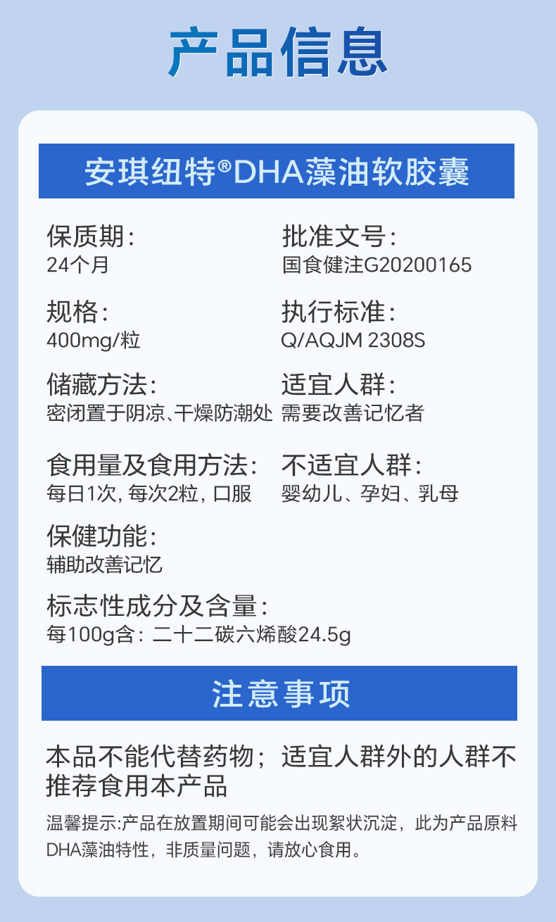 安琪纽特DHA藻油软胶囊400mg*60粒