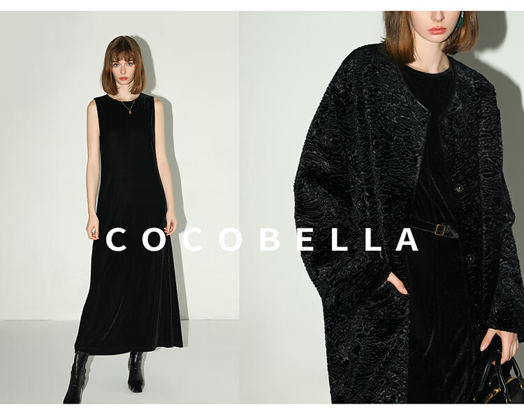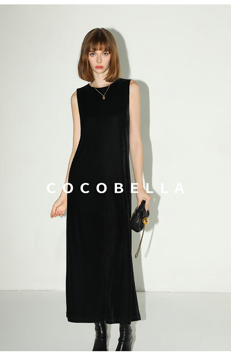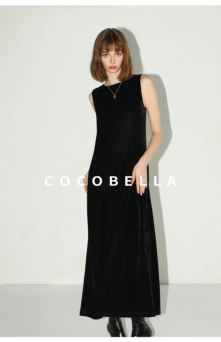 COCOBELLA赫本风轻奢丝绒连衣裙女冬气质混搭风背心裙FR3070