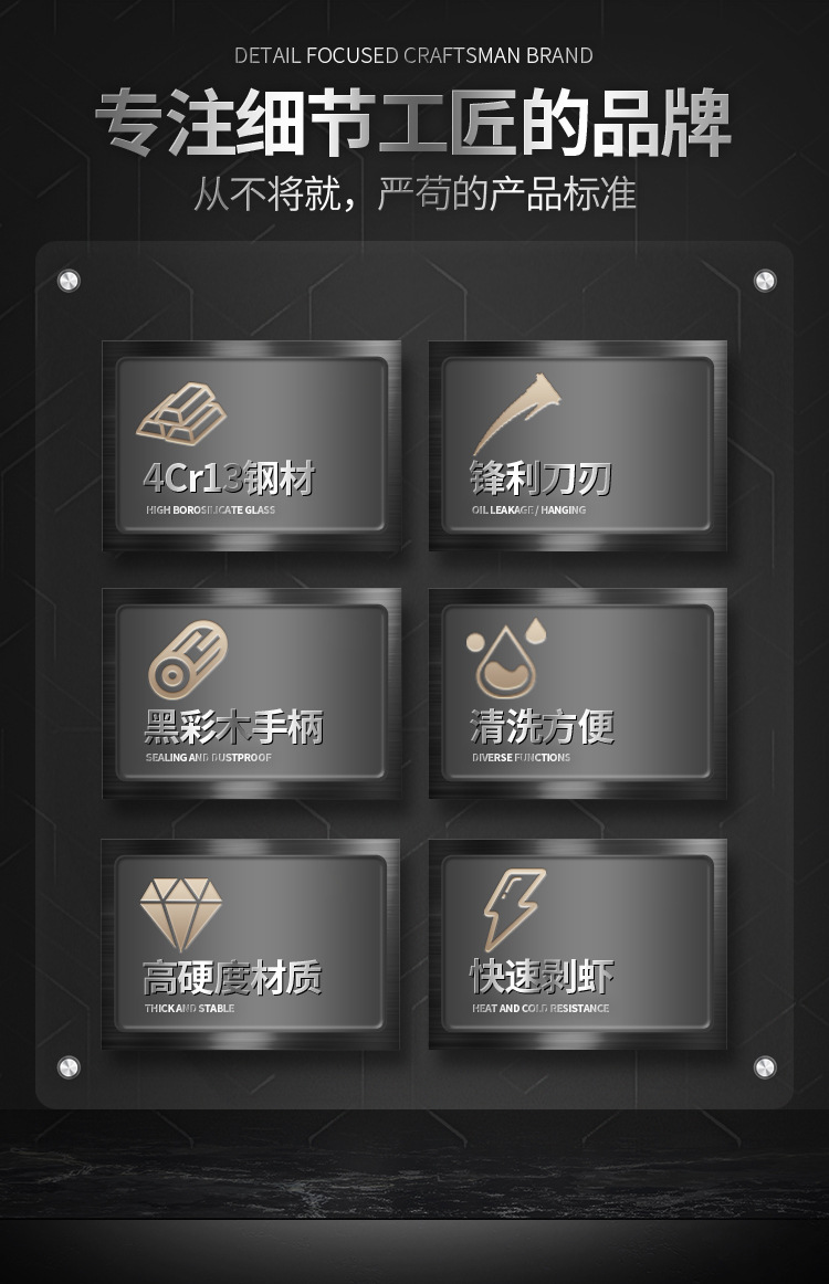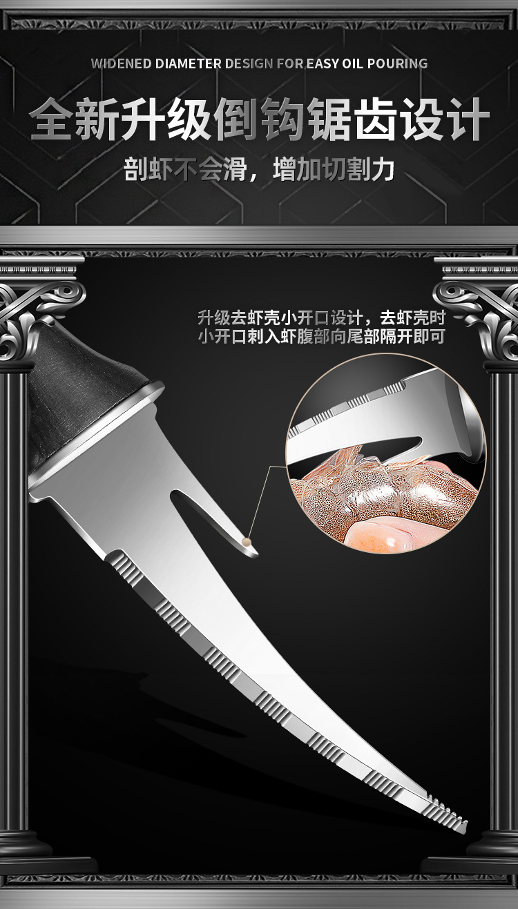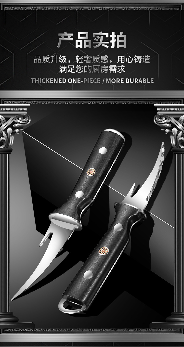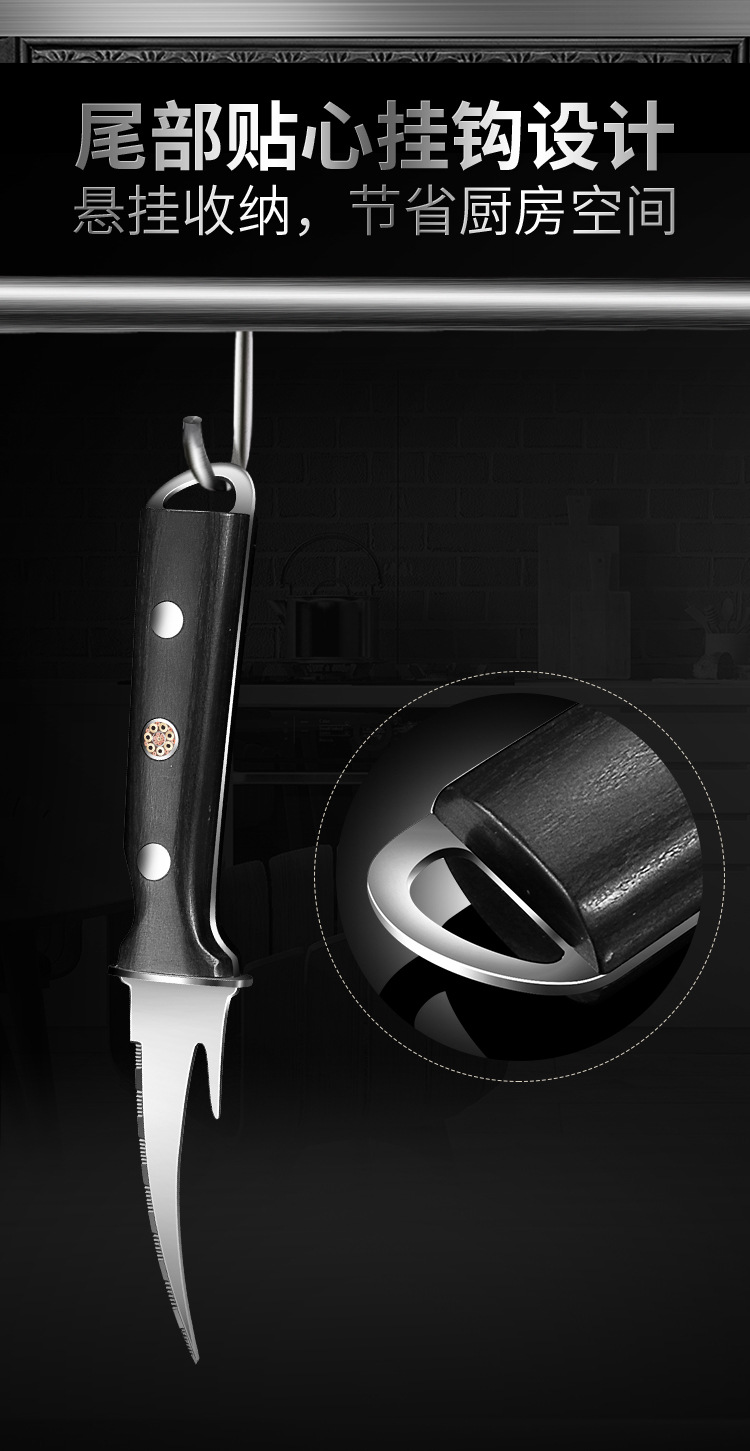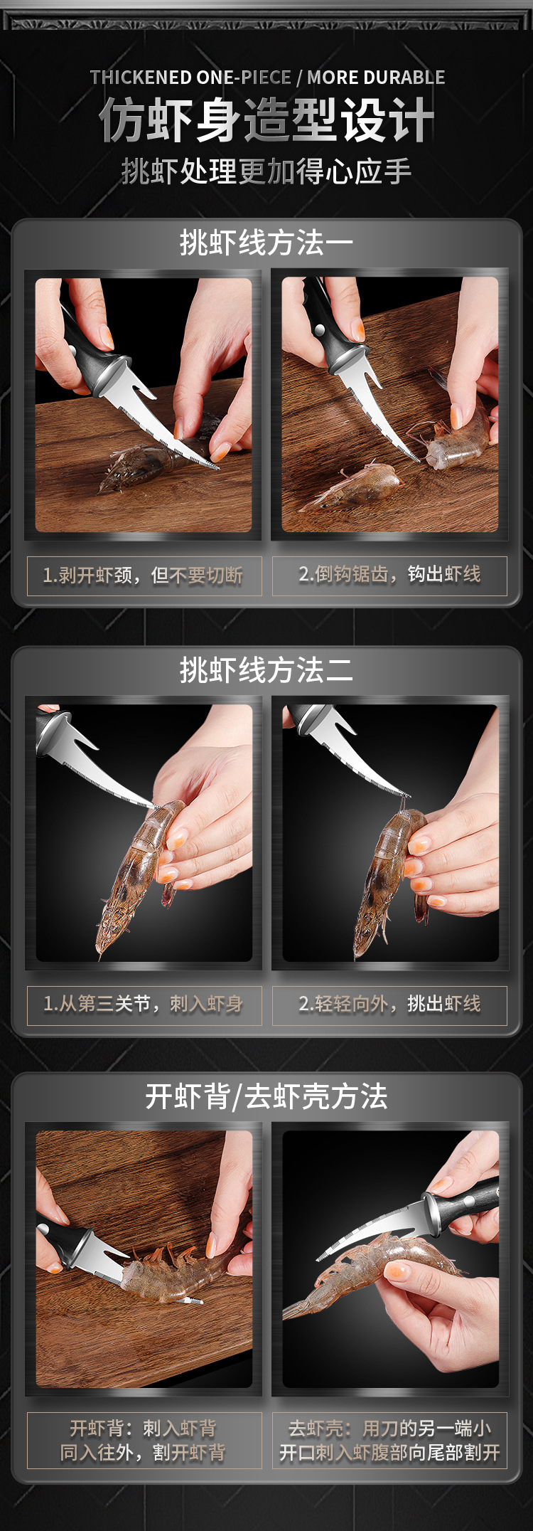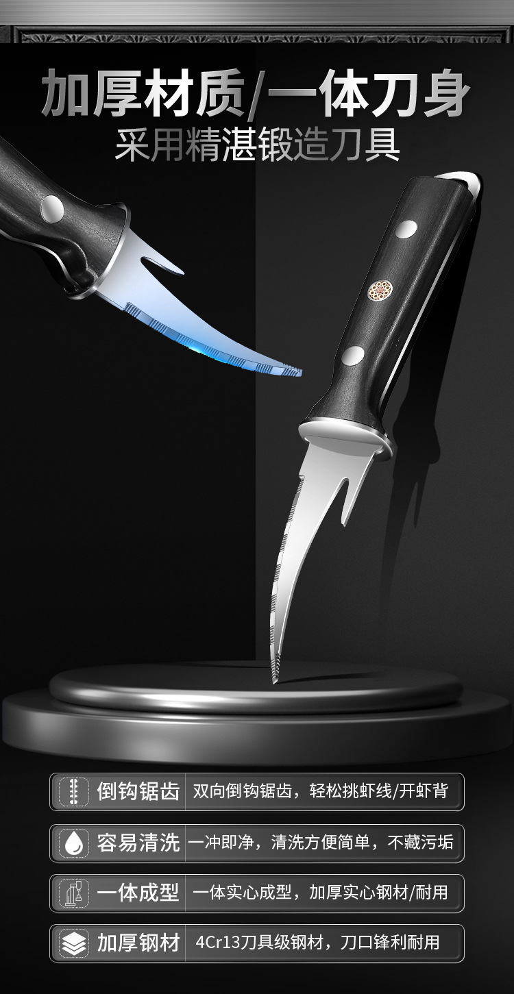 【跨境出口德国虾线刀】跨境不锈钢虾线刀家用黑彩木多功能开虾背小工具厨房多用途鱼肚刀