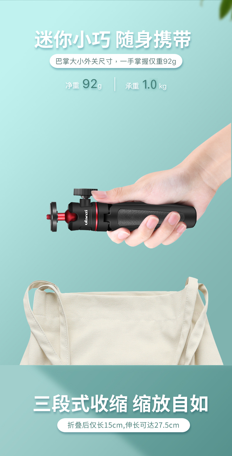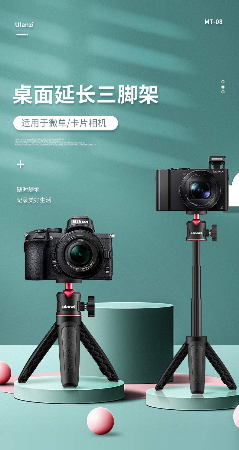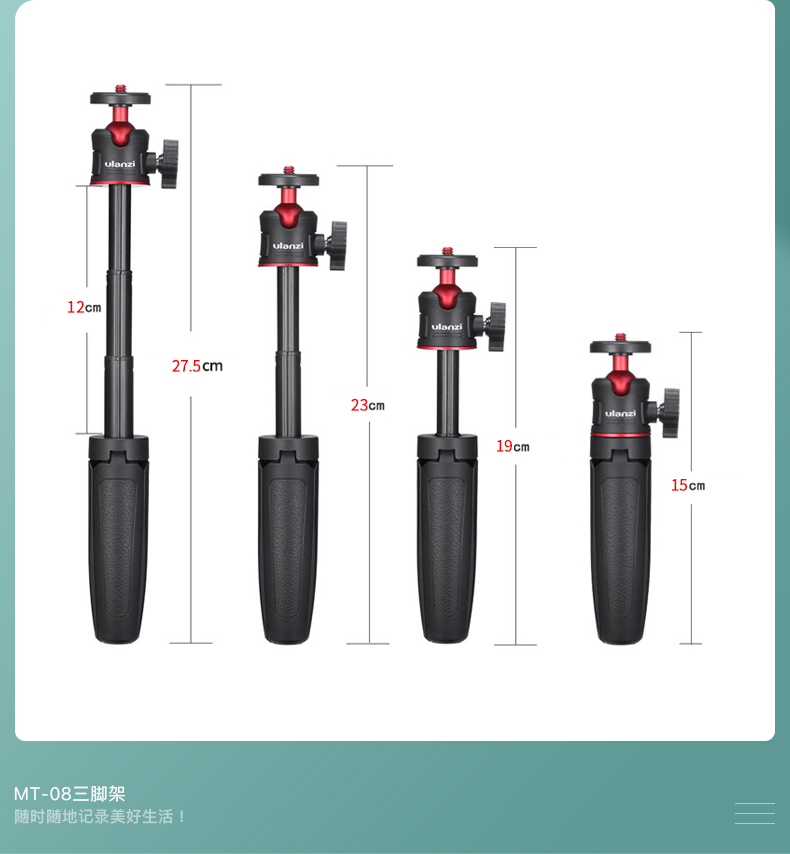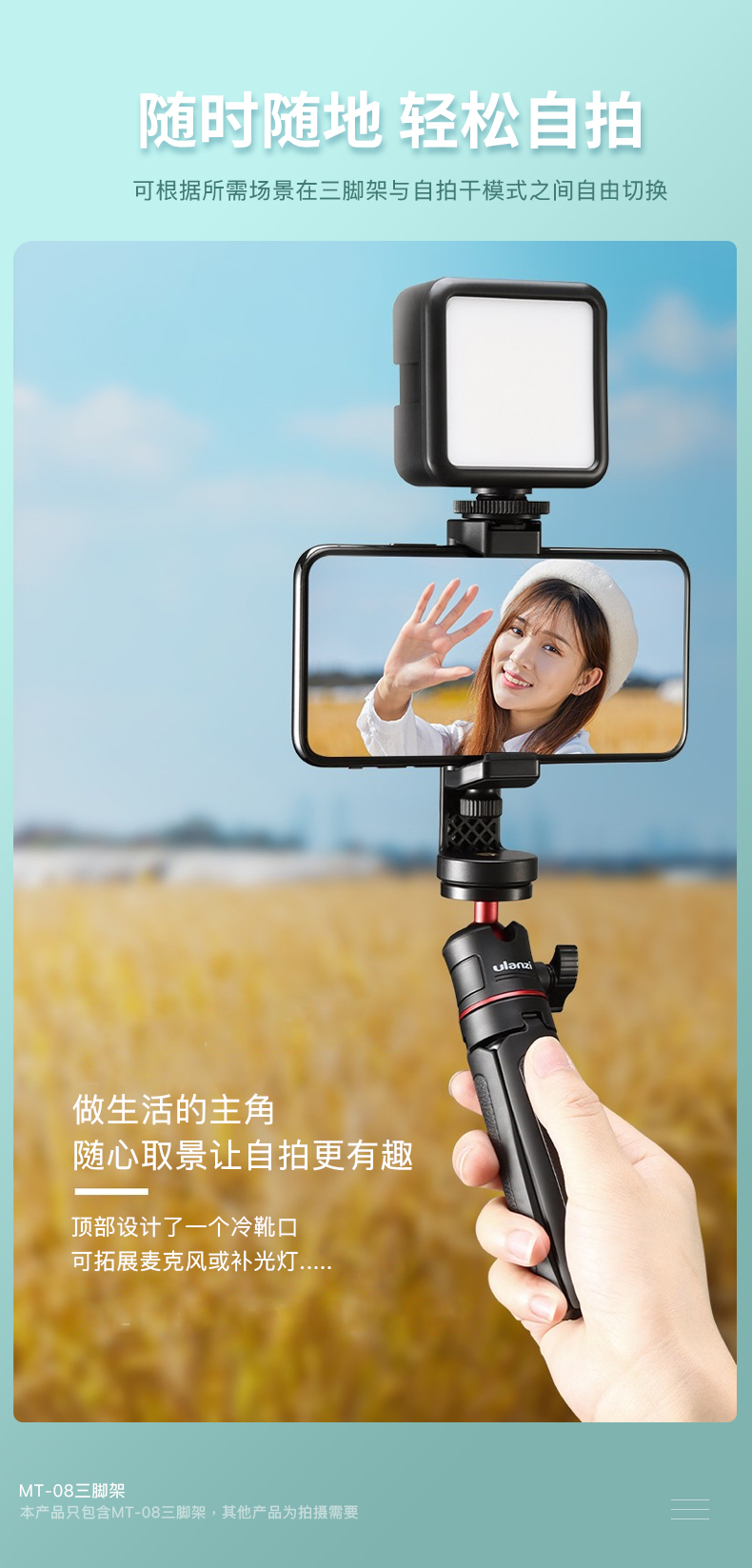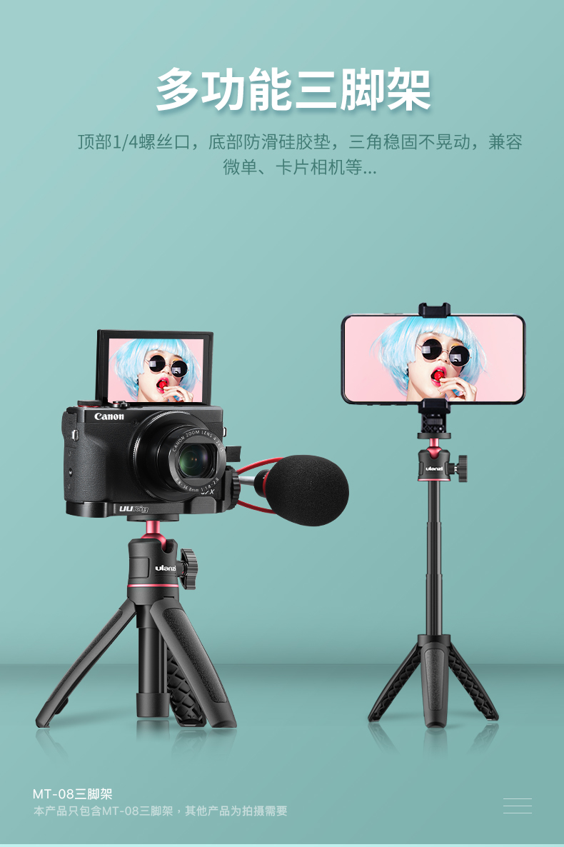 Ulanzi优篮子 MT-08迷你便携三脚架桌面手直播支架vlog伸缩延长自拍杆微单G7X3相手通用