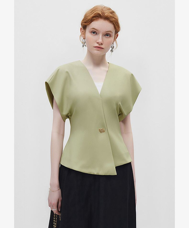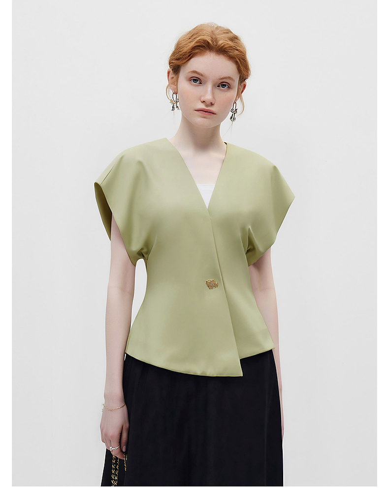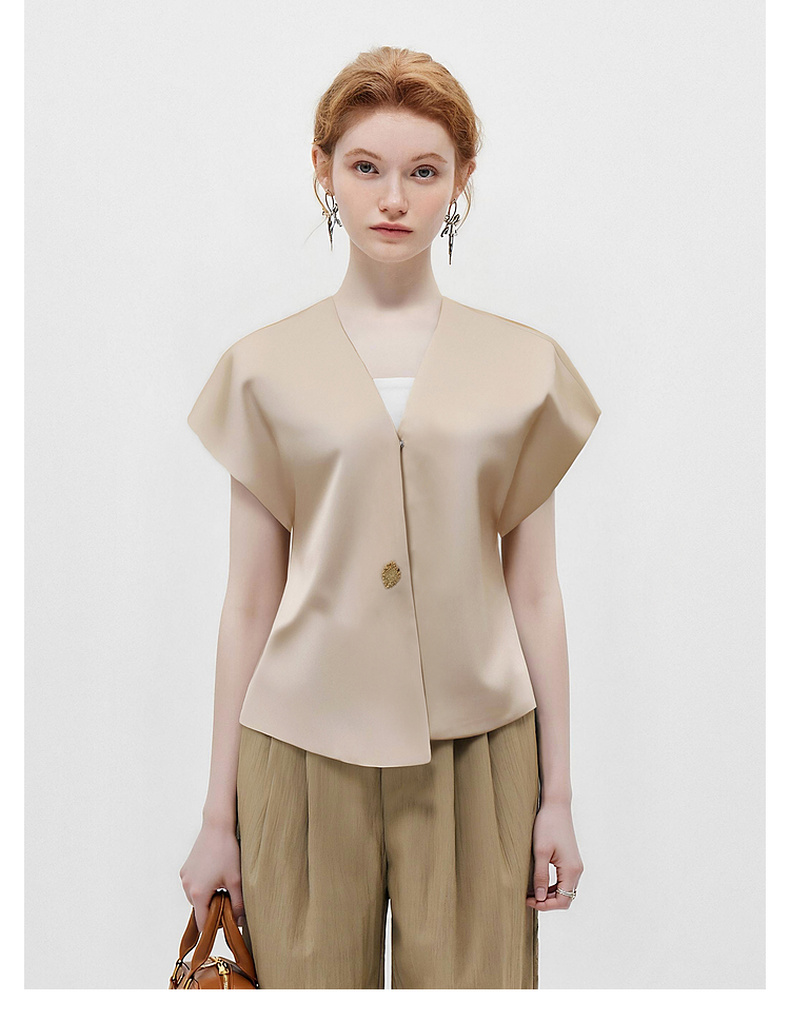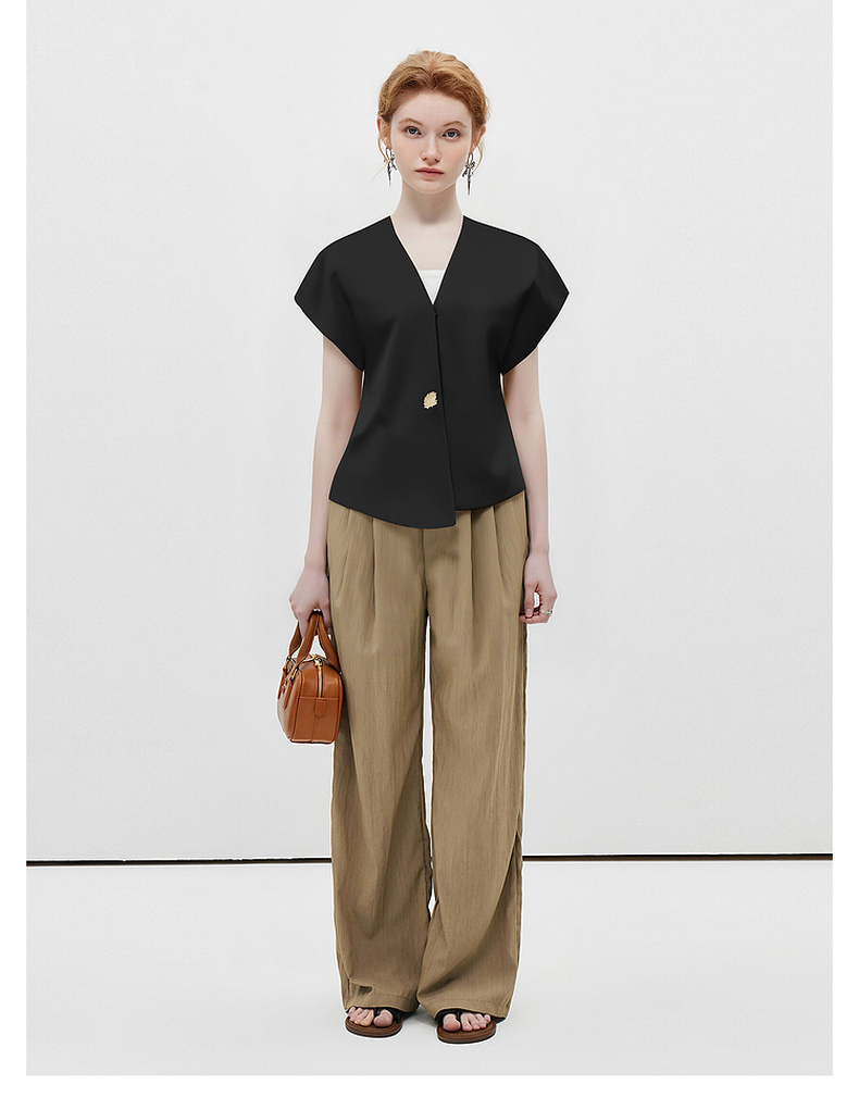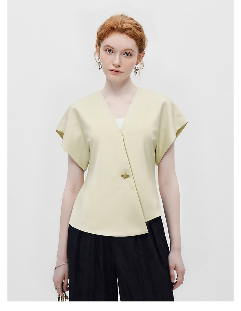 拉夏贝尔/La ChapelleV领短袖设计扣开衫女法式设计感小众洋气时尚高级感上衣