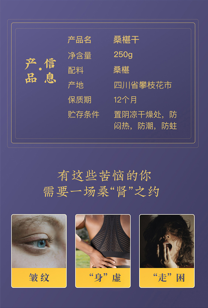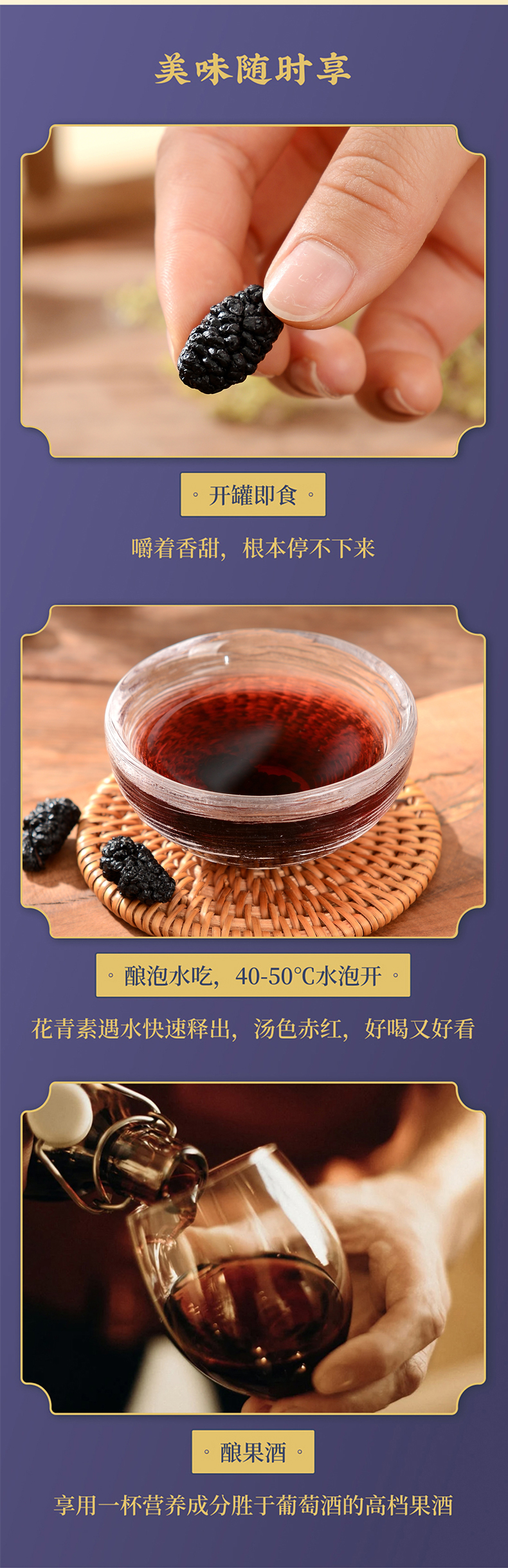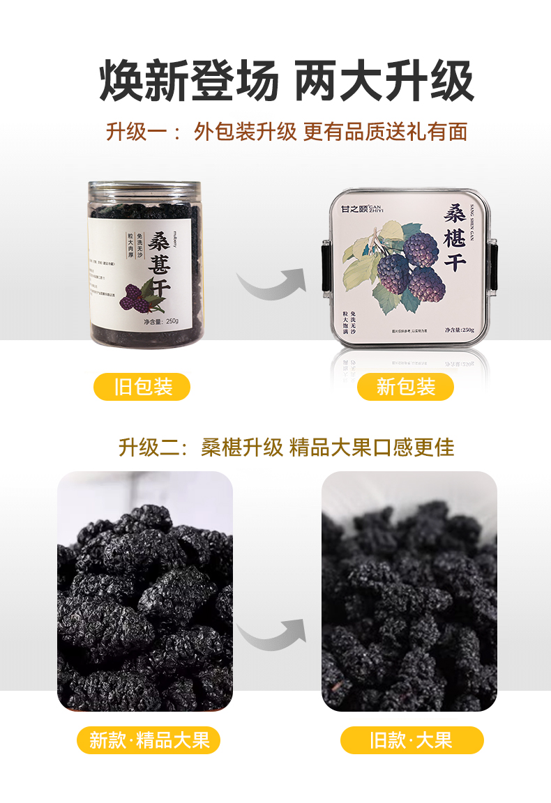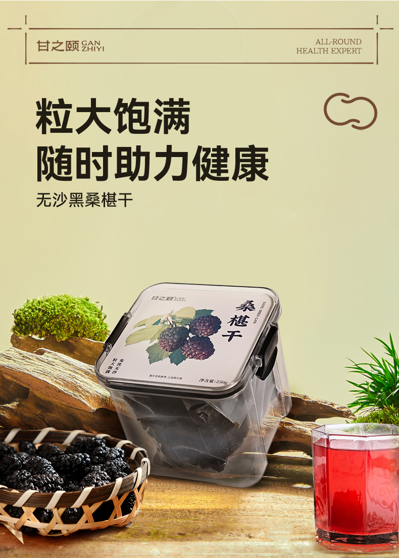 甘之颐 桑葚干250g 精品优质黑桑甚大果泡水茶搭枸杞花素青免洗无沙