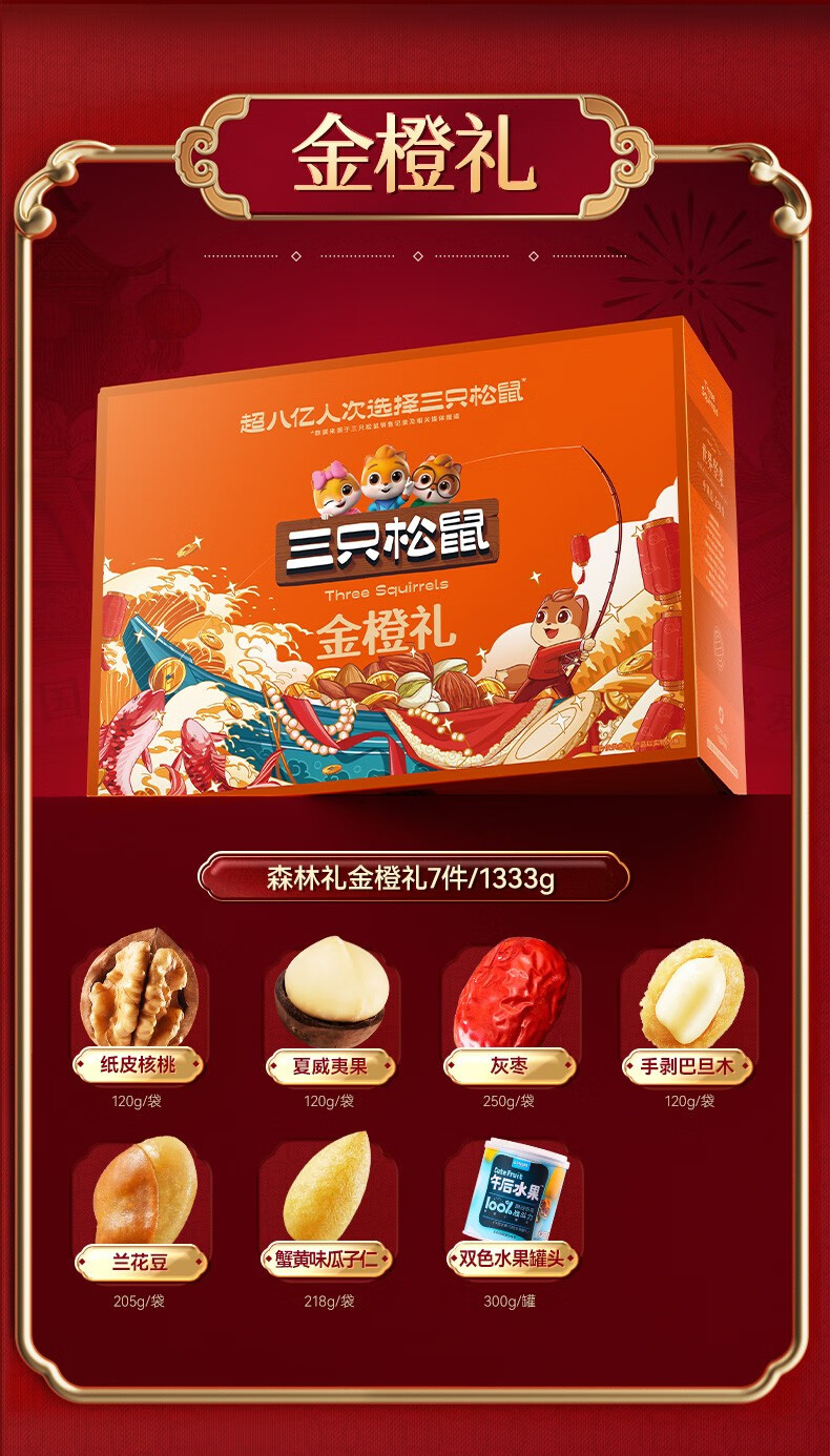 三只松鼠 坚果礼盒 炒货干果果干混合礼盒 金橙礼干果礼盒1333g
