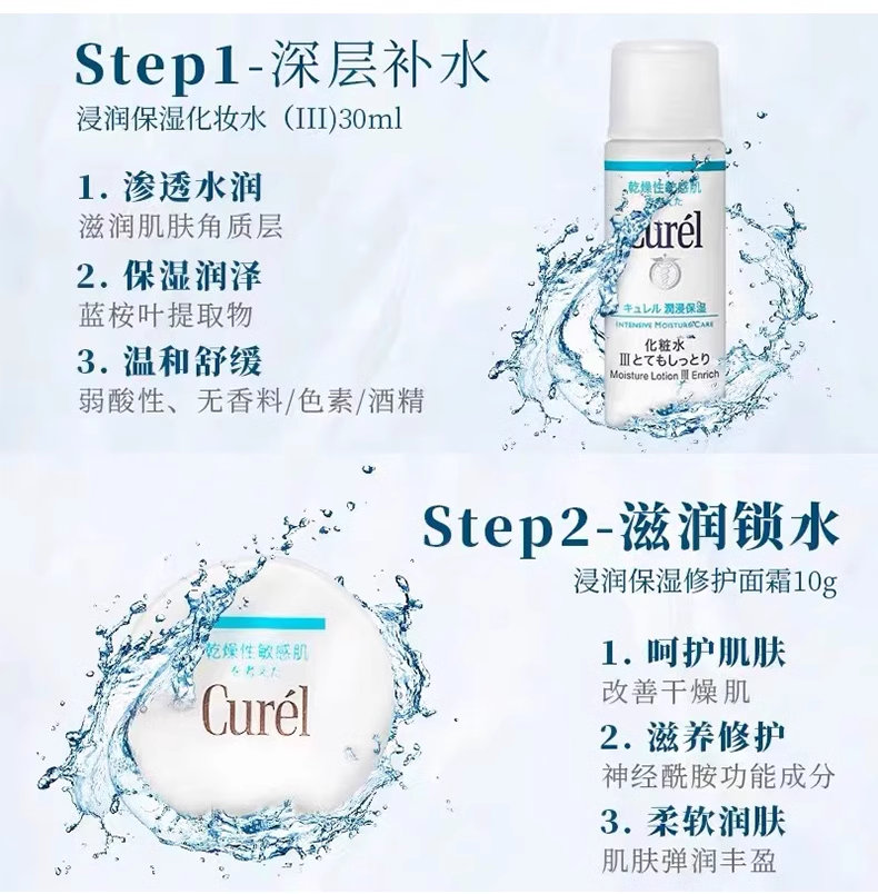 【礼想心动】Curel 珂润 3号化妆水面霜(超保湿型)旅行便携礼盒装30ml+10g