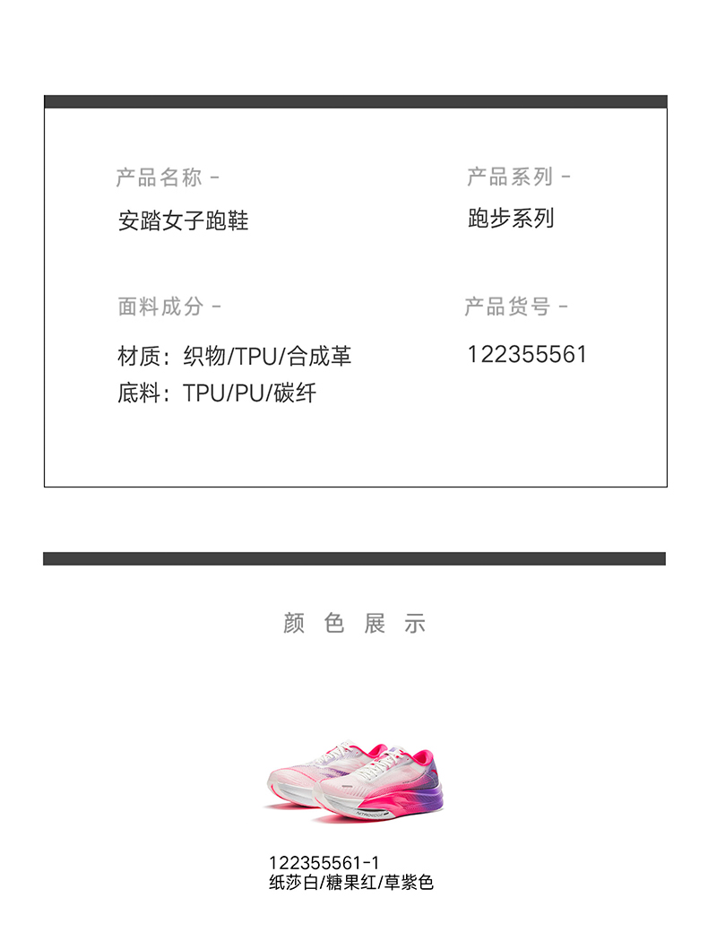 【马拉松】安踏C202 5 GT PRO竞速训练系列女子跑鞋122355561