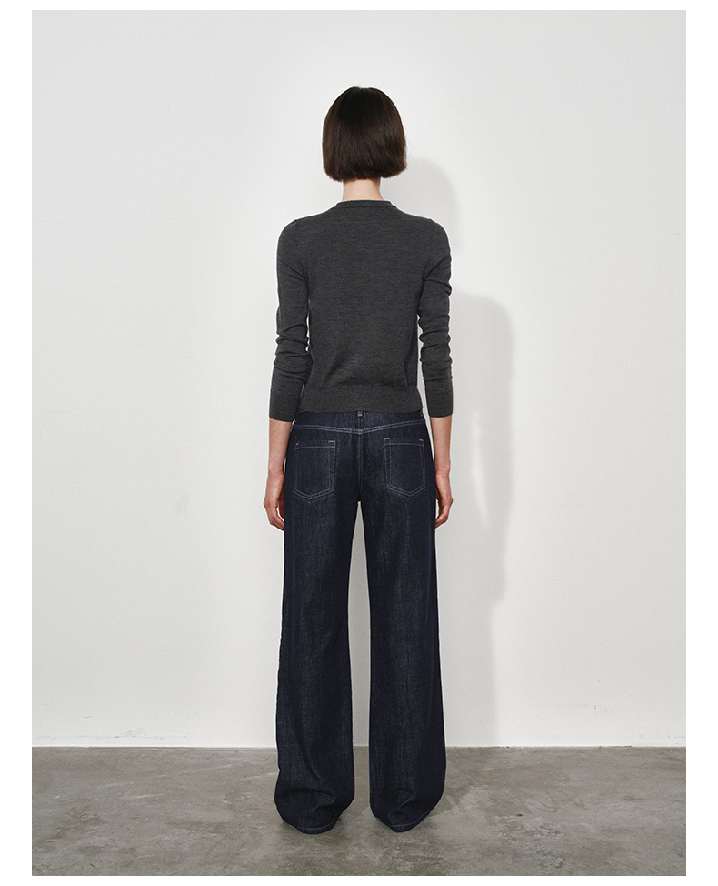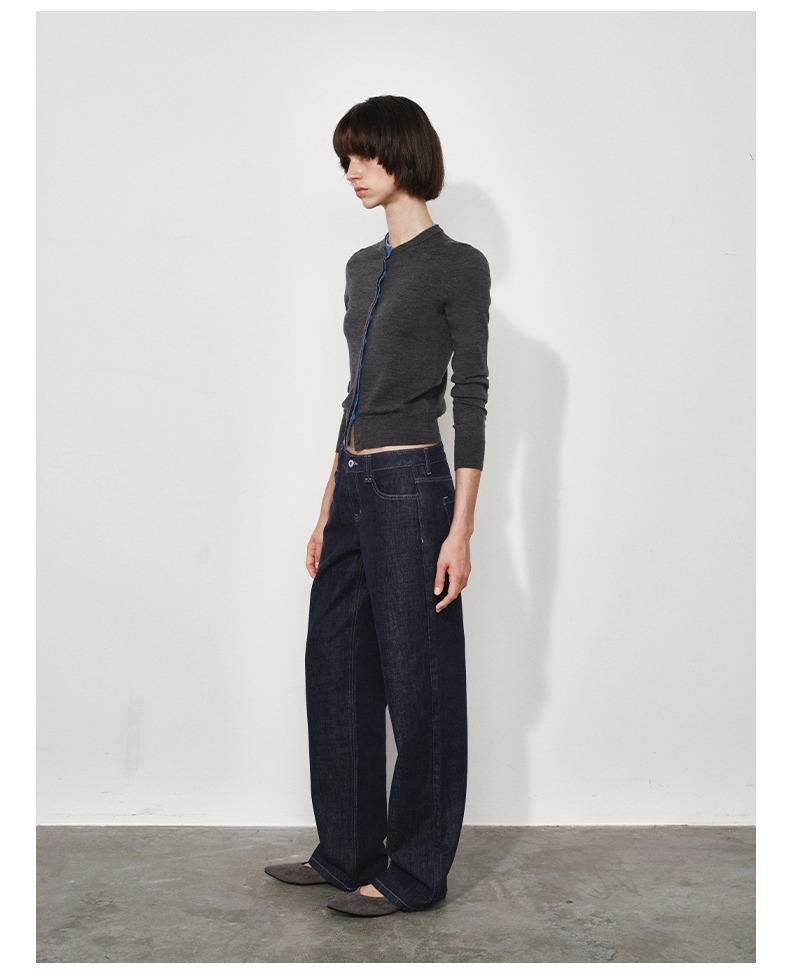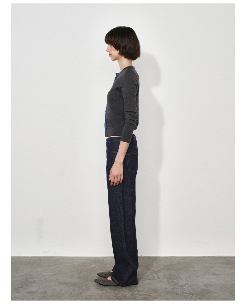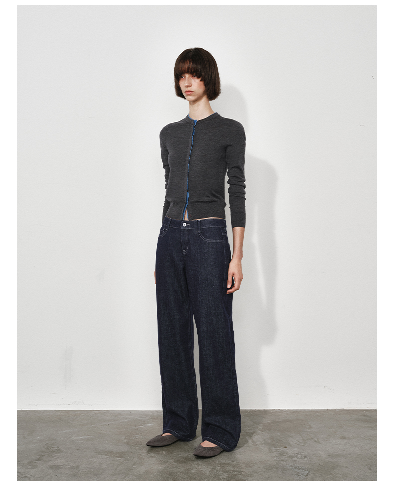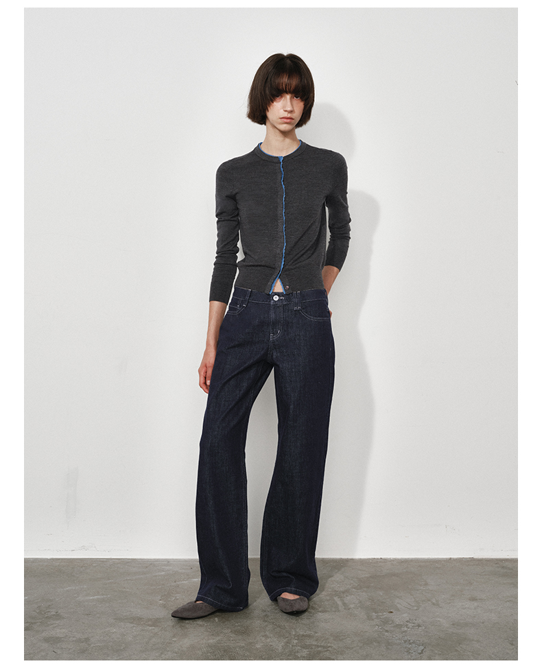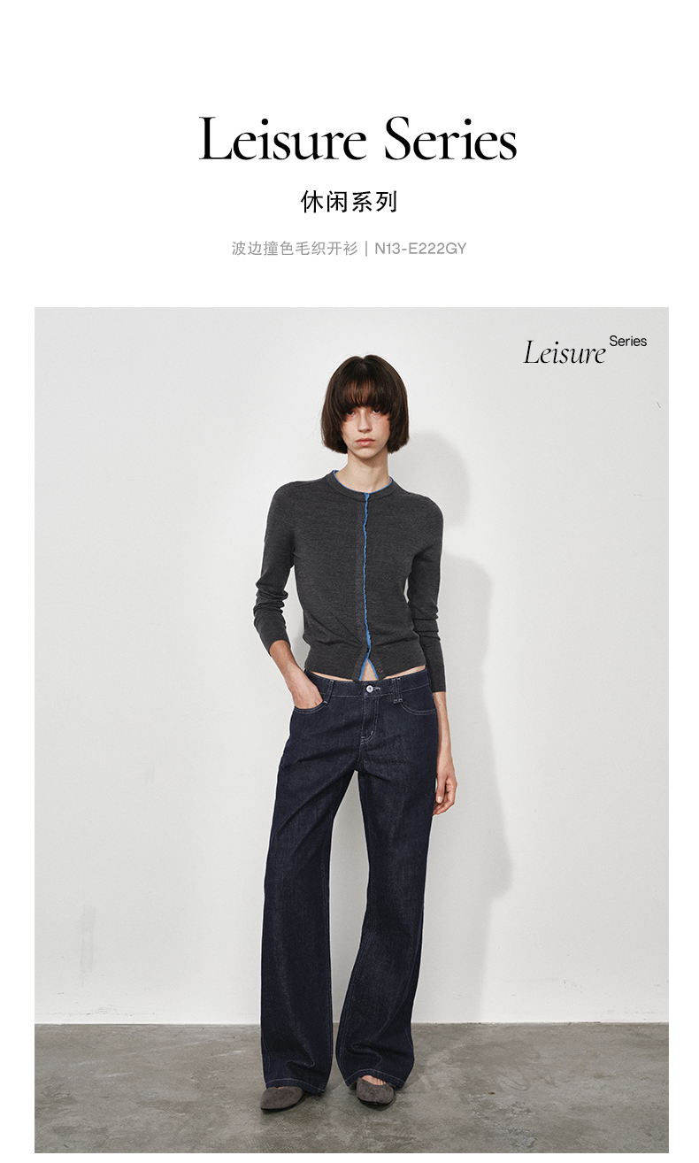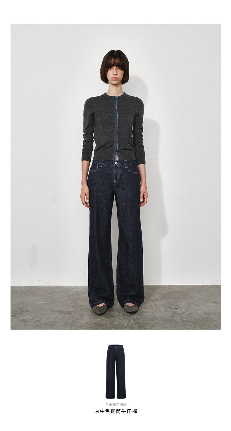 NUTH 可机洗100%纯羊毛撞色灰色修身短款长袖针织开衫女(发货时间同步天猫)