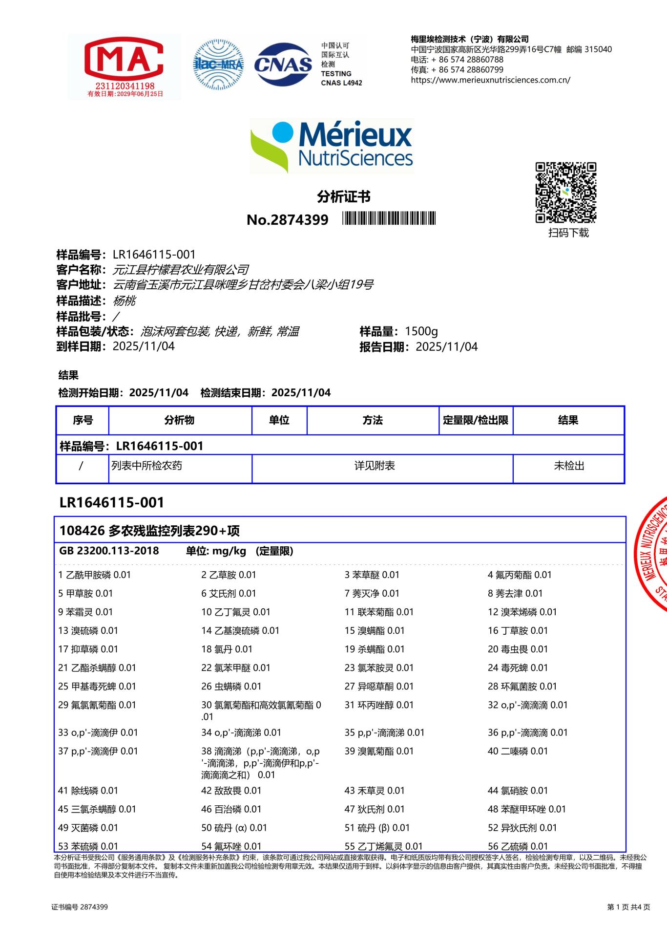 每年上架分享前,柠檬君都会采样(取地块四个角与中间处做取样点)进行农残检测。2025年11月柠檬君杨桃297项农残0检出。