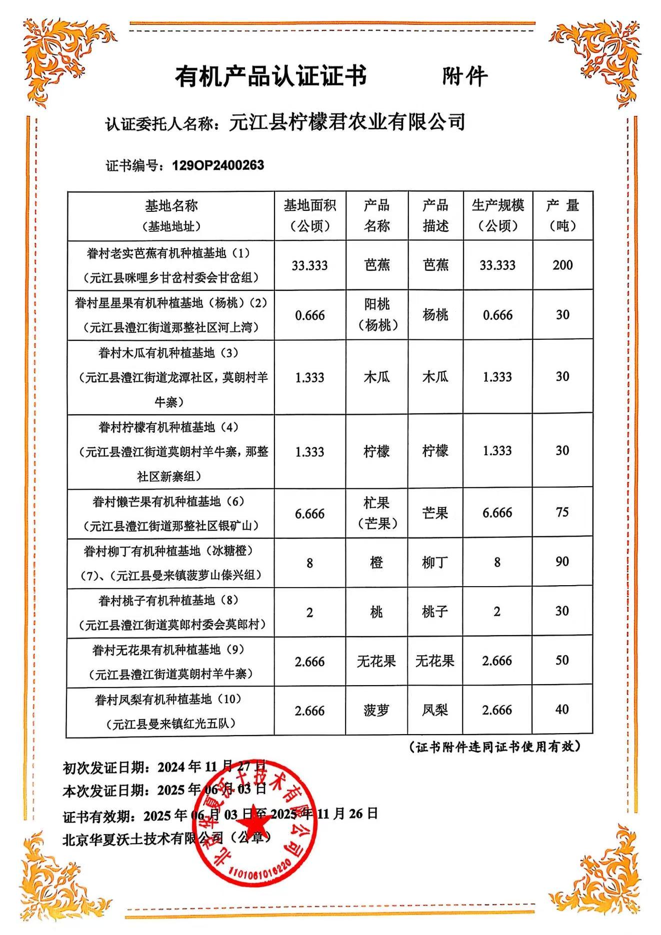 生产方式:坚持自然的种植方法,施发酵羊粪、菜籽饼等有机肥,全程不使用化学农药、化肥、除草剂及催熟剂,人工除草后原地覆盖,并通过套袋等物理防虫。依循杨桃自然生长周期,待其在树上自然成熟后采摘。