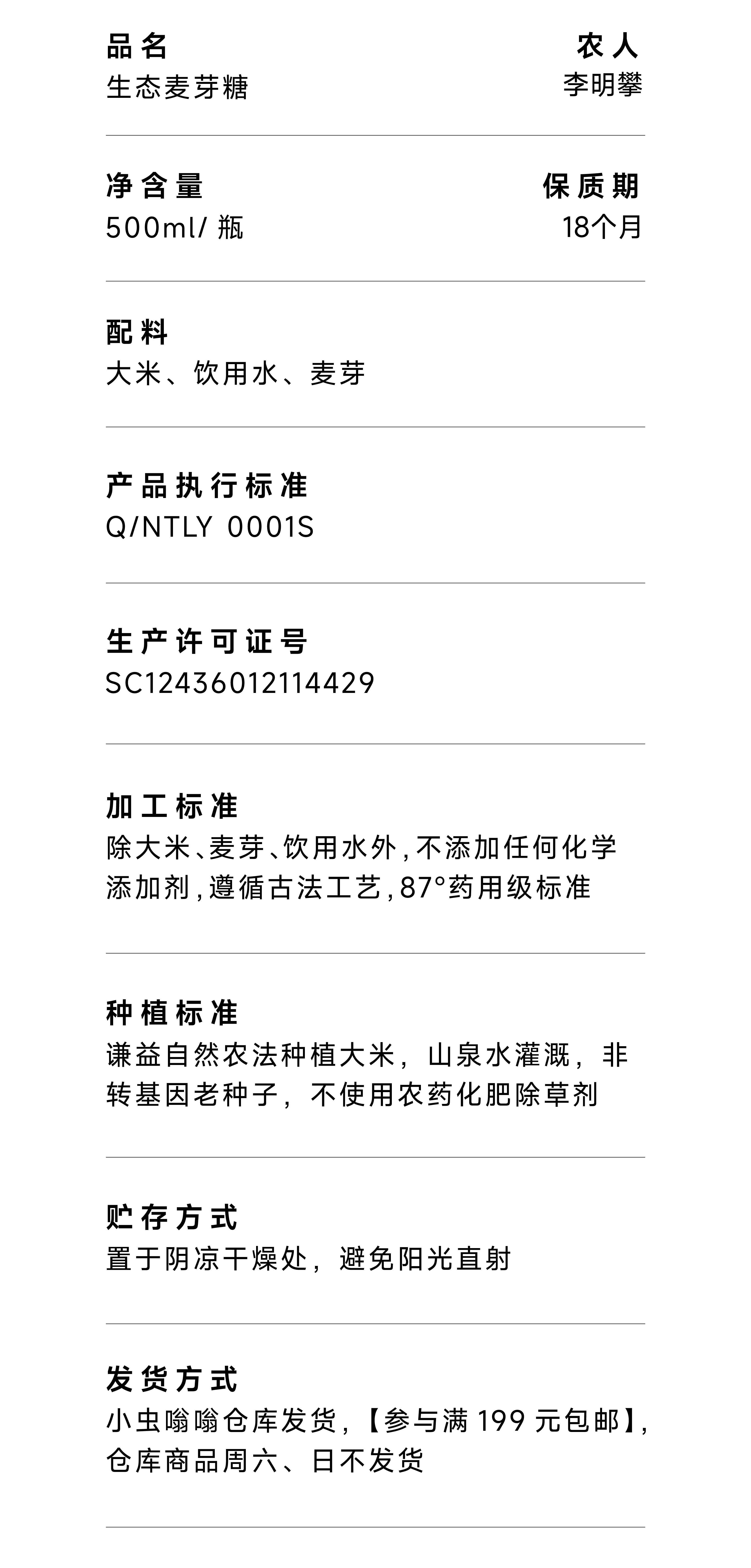 生态麦芽糖 500ml/瓶 | 合作农友生产,产自,生产者:李明攀 &【公平贸易农人定价】