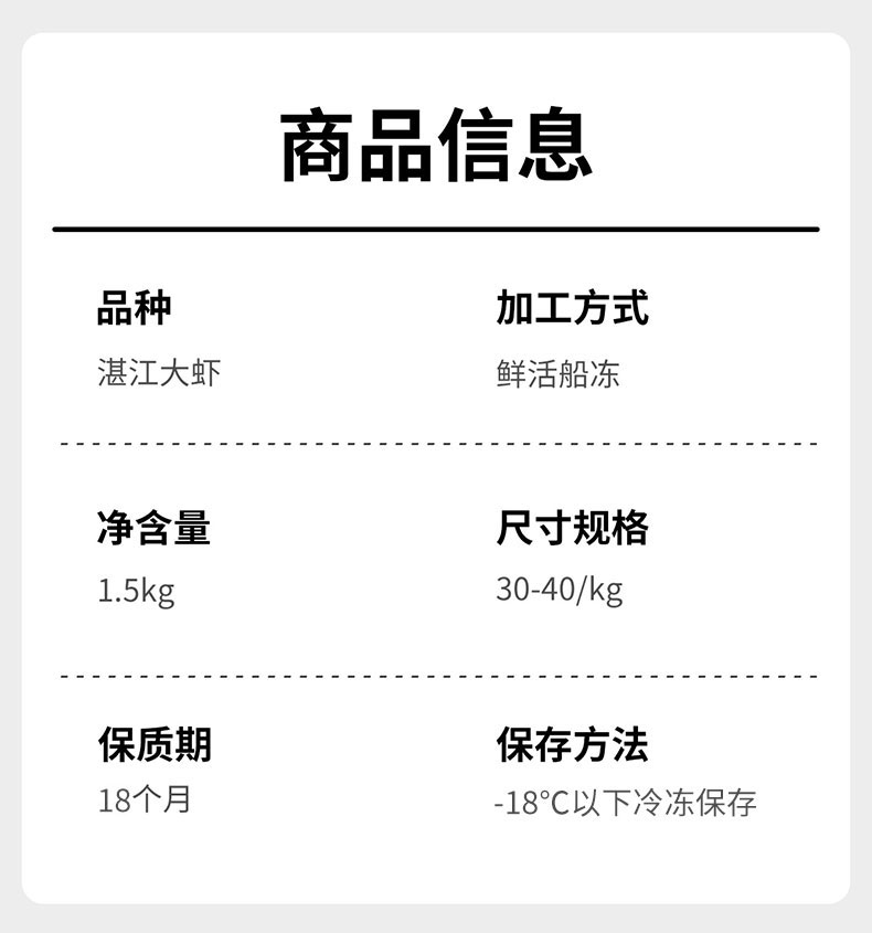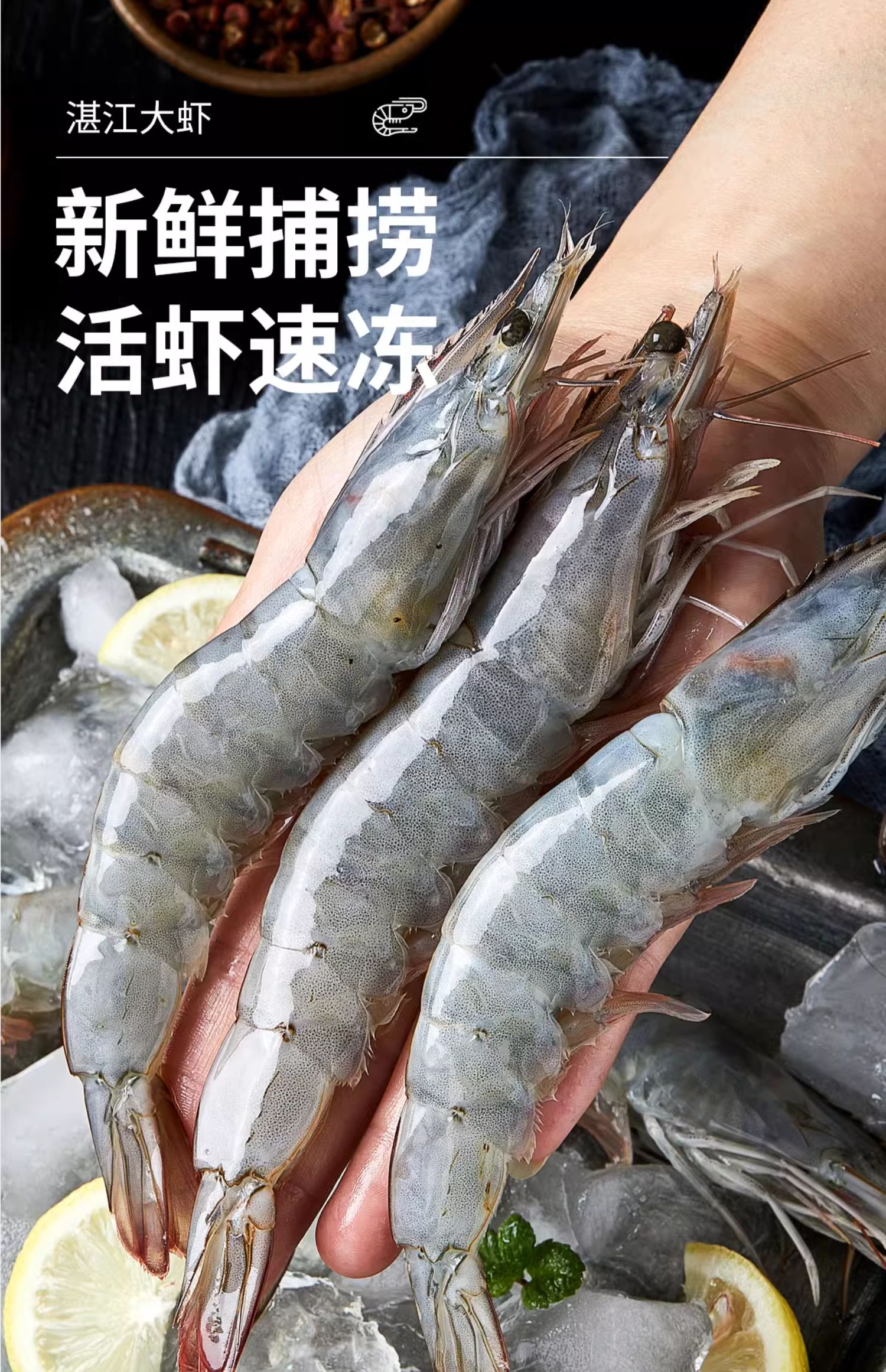 优选丨大黄鲜森湛江大虾鲜活速冻白虾类海鲜3040大虾1.5kg/盒