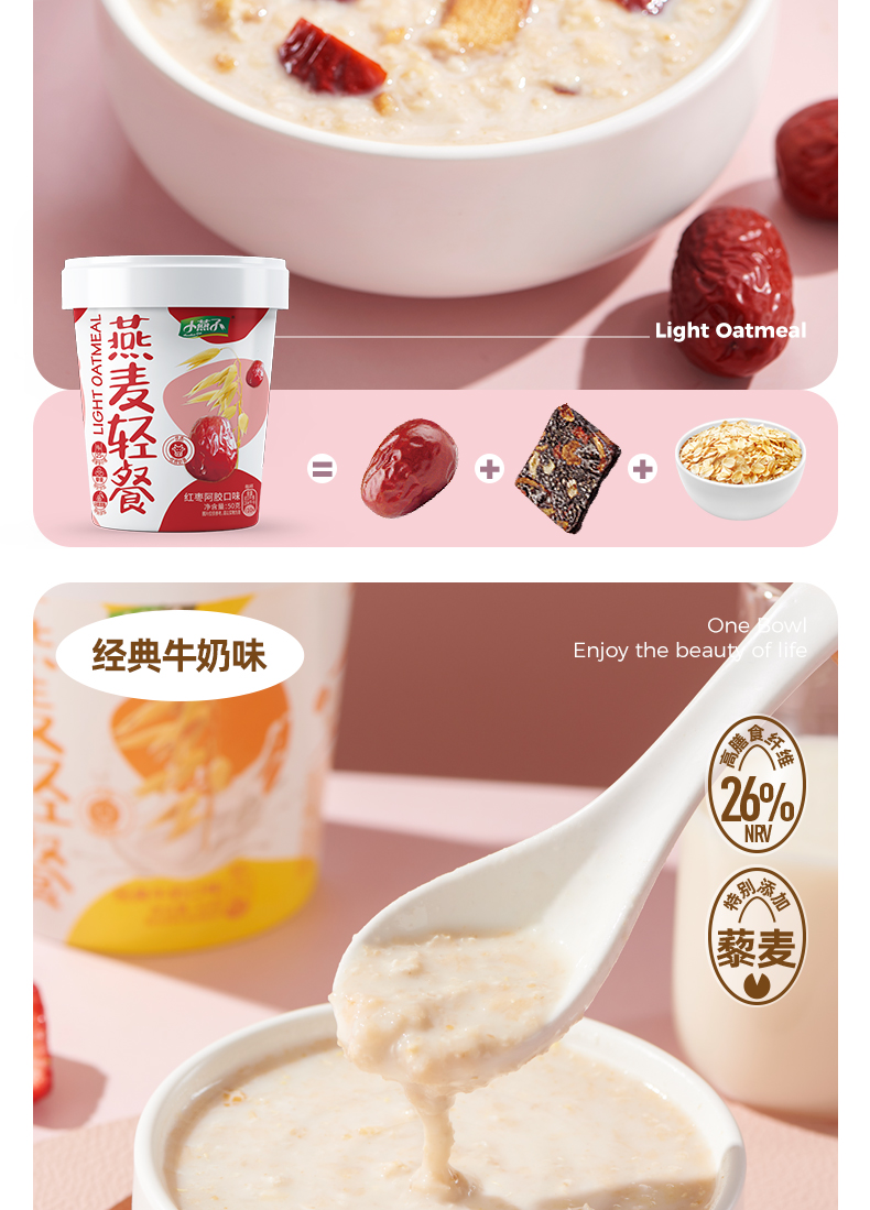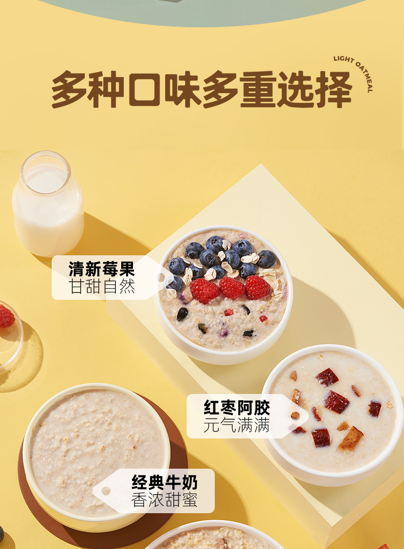 【阴山优麦·燕麦轻餐】代餐速食粥 50g/杯 红枣/牛奶/莓果3种口感