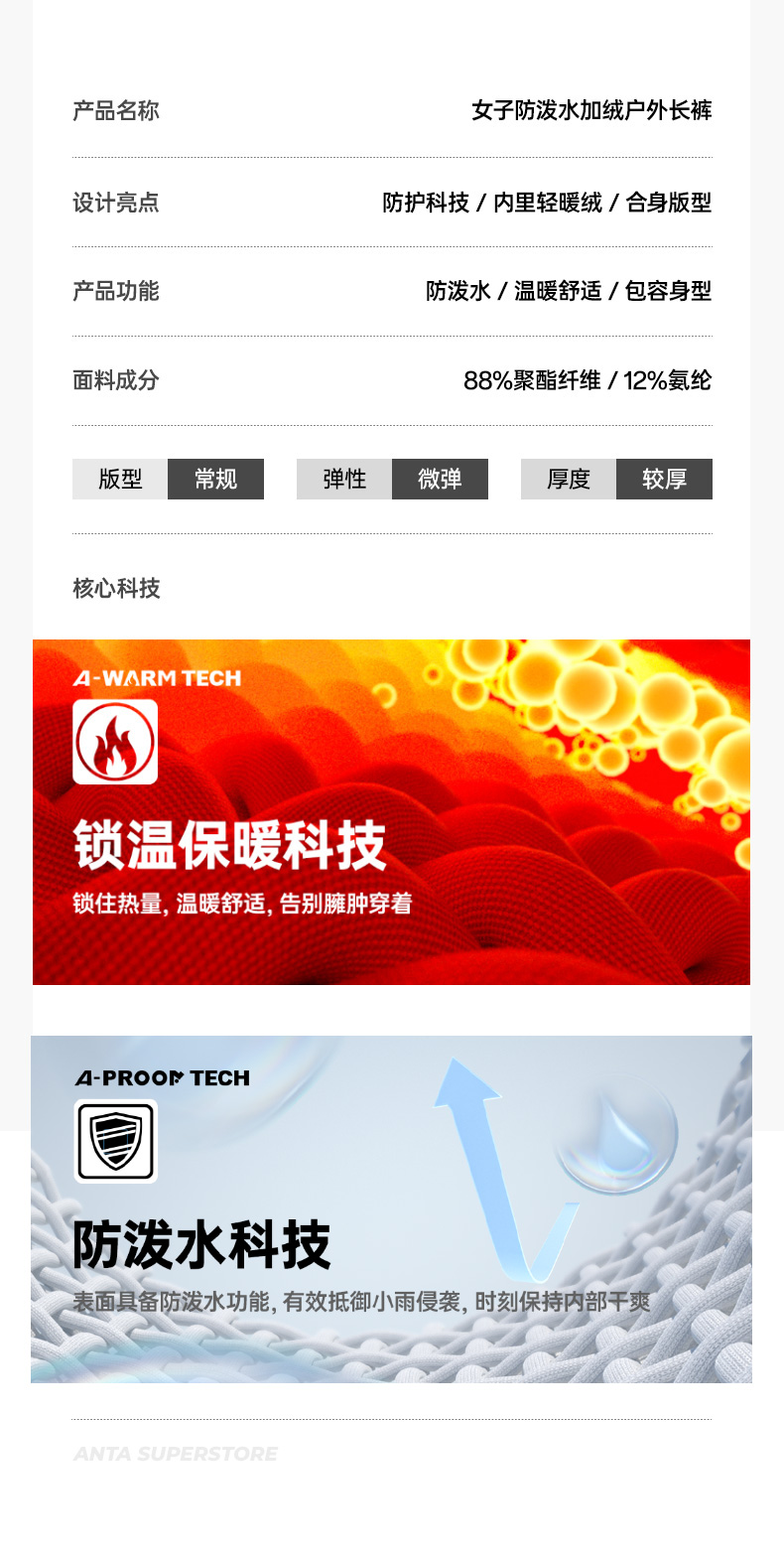 超级安踏焱绒裤丨加绒运动裤女裤秋冬防泼水保暖徒步休闲长裤子162546504U