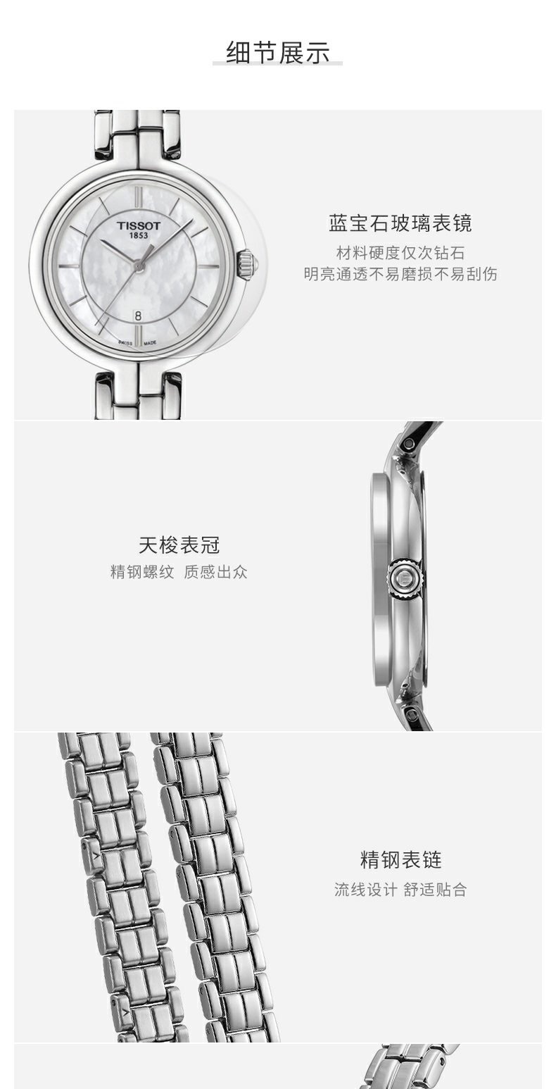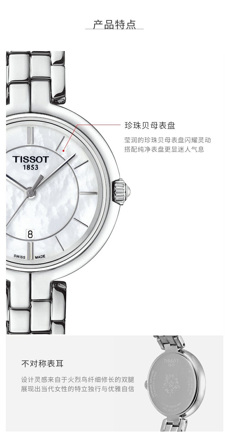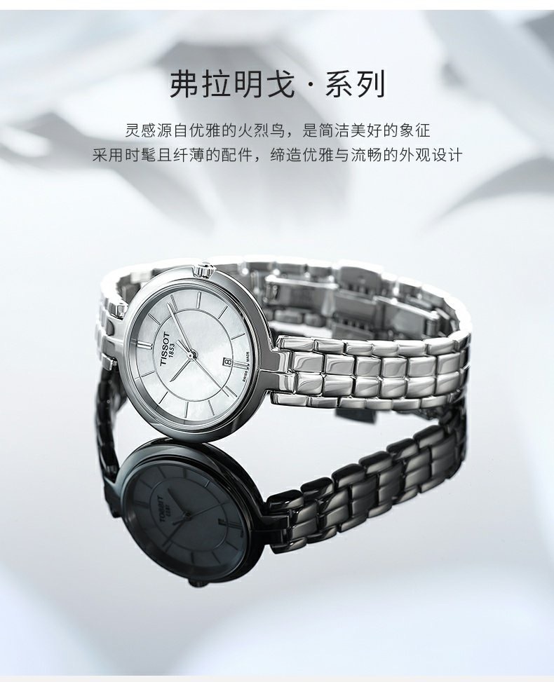 Tissot天梭官方弗拉明戈贝母表盘石英钢带手表女表