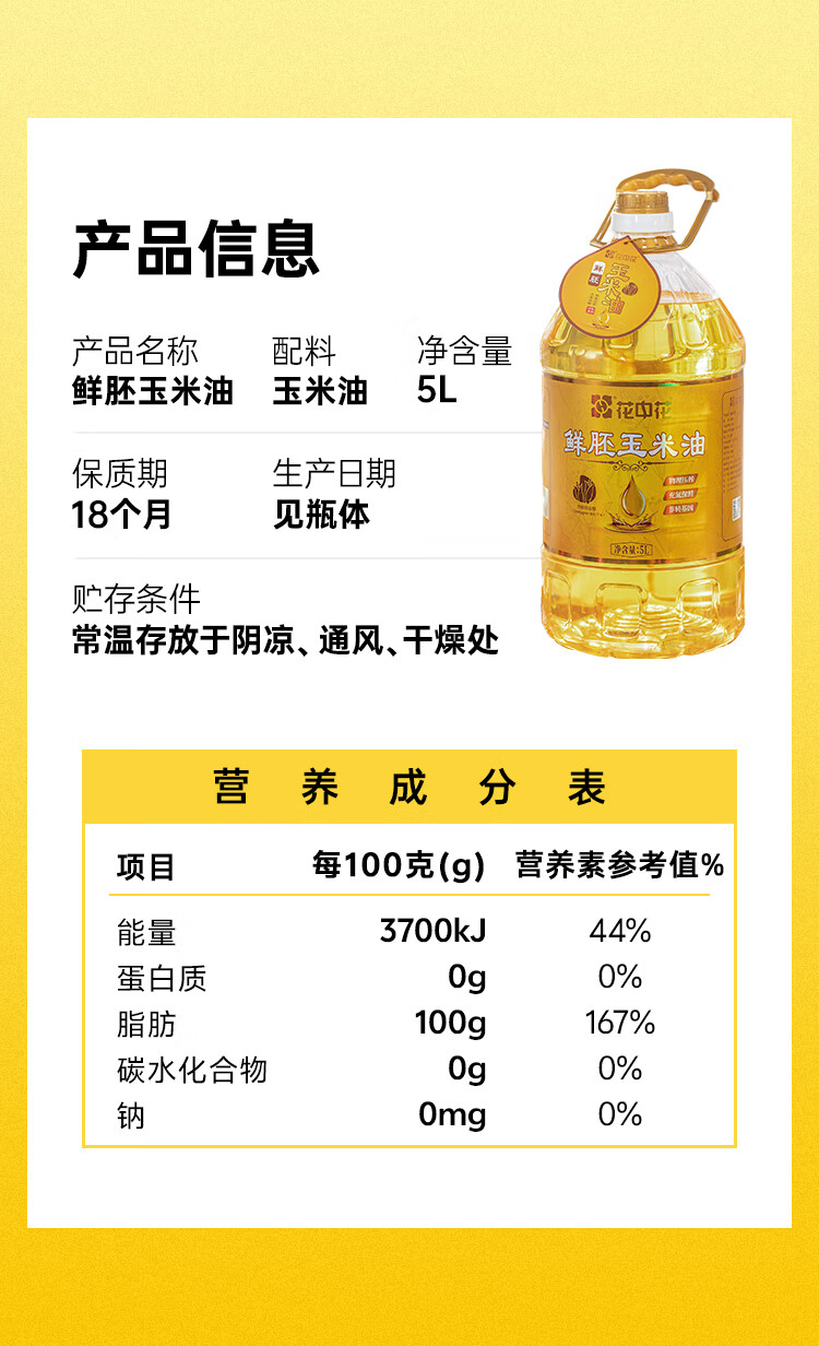 花中花 鲜胚玉米油5L