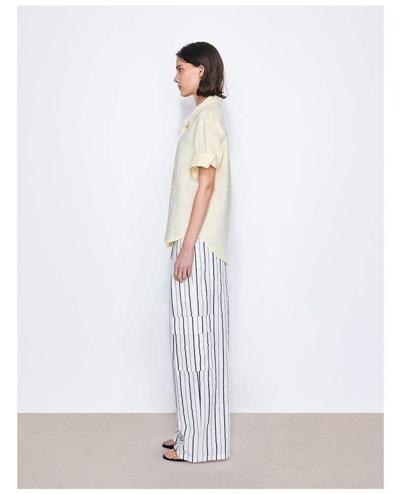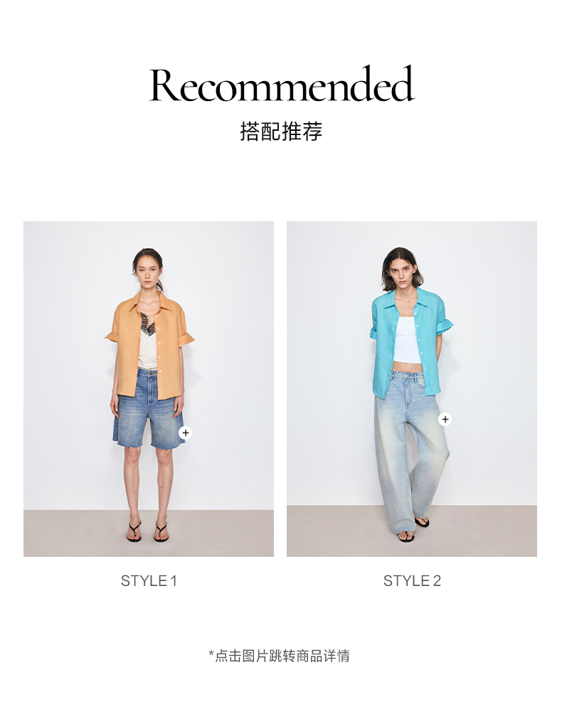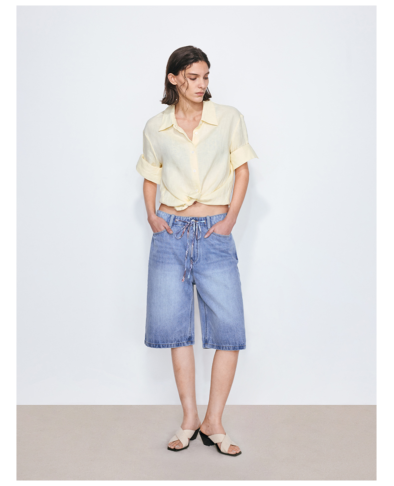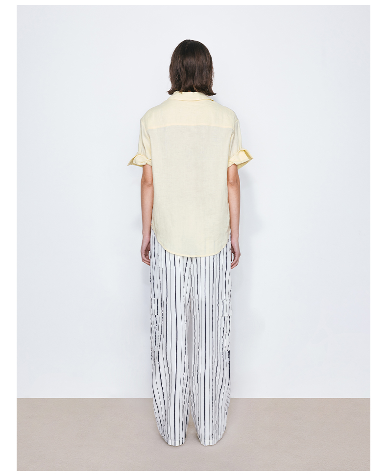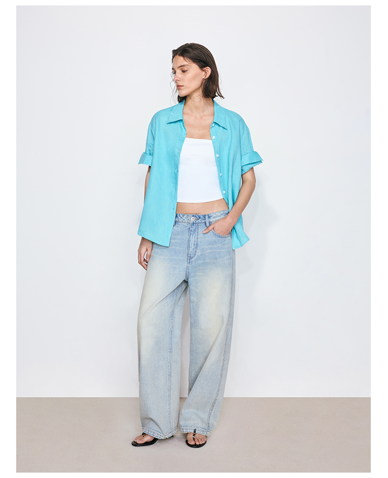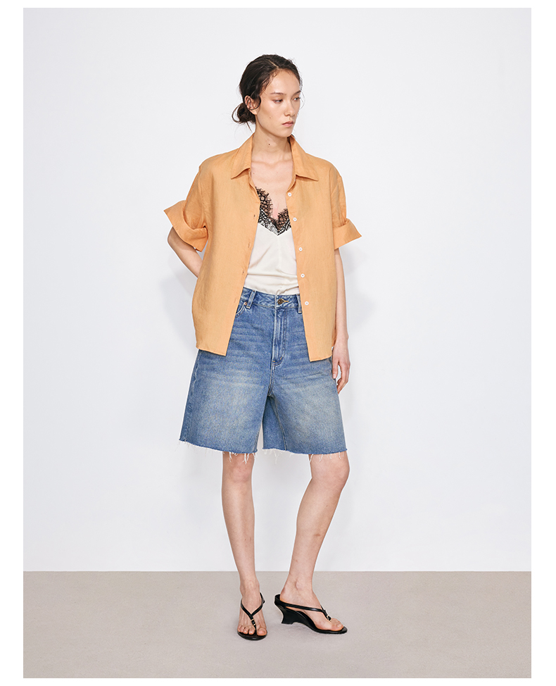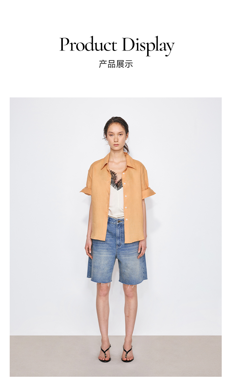 NUTH亚麻翻领宽松短袖衬衫女 湖蓝色/黄色/橙色