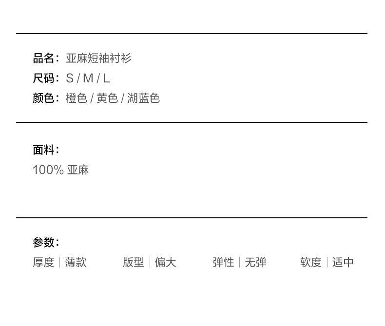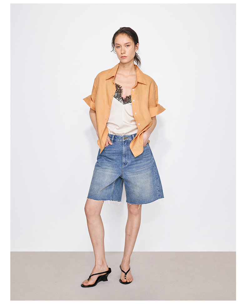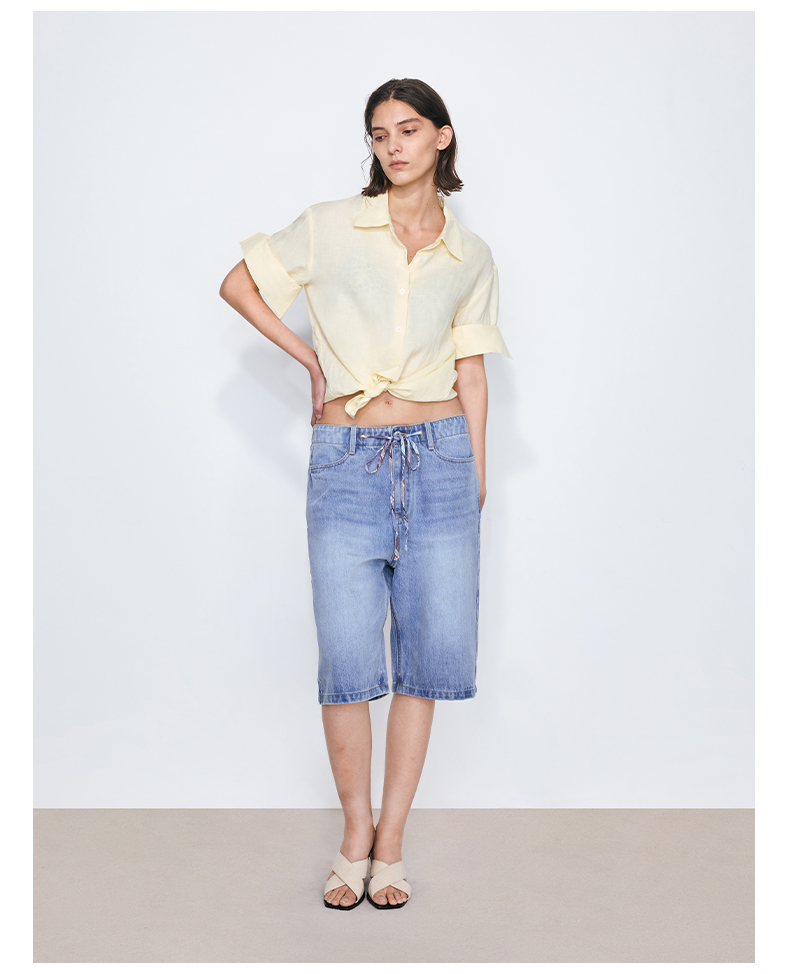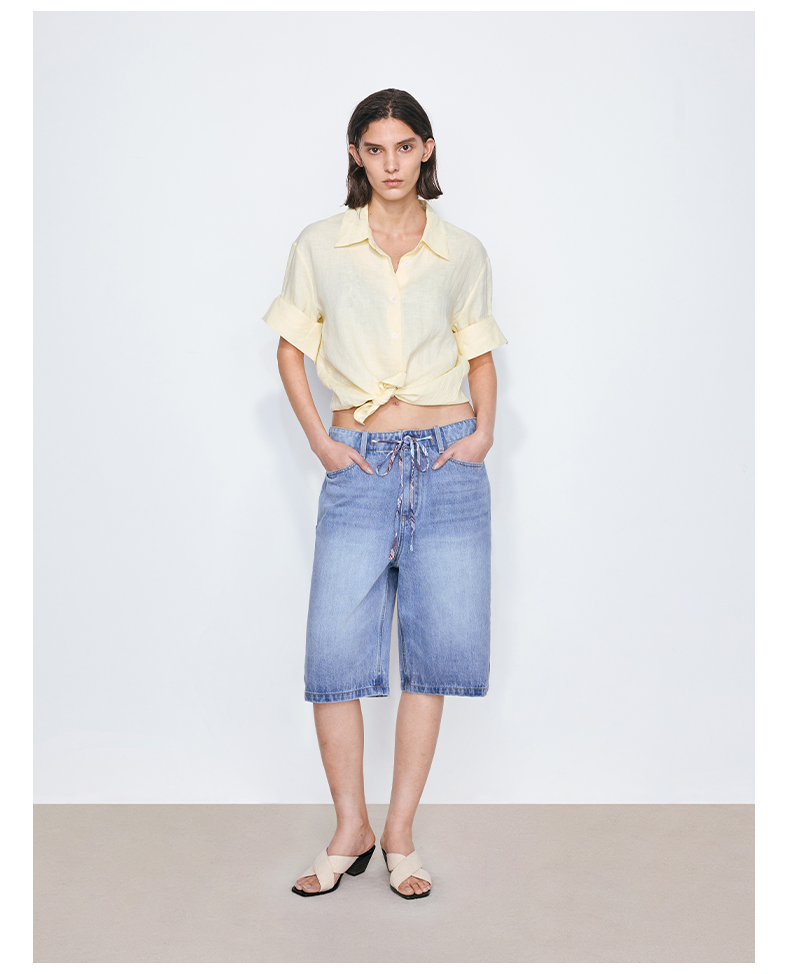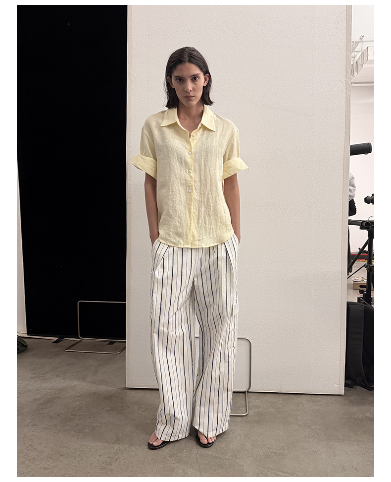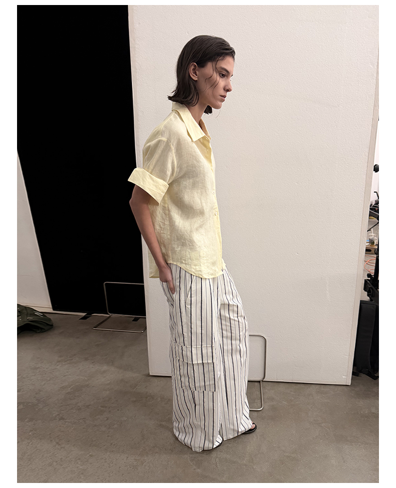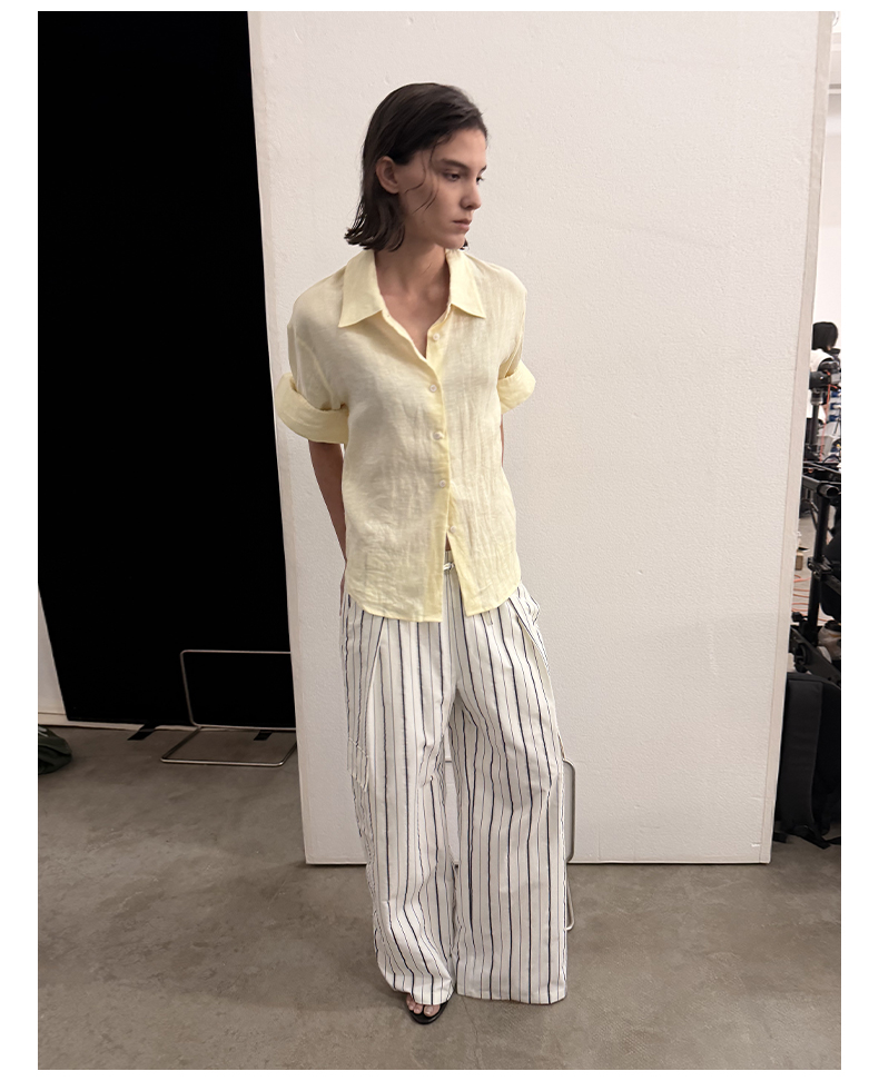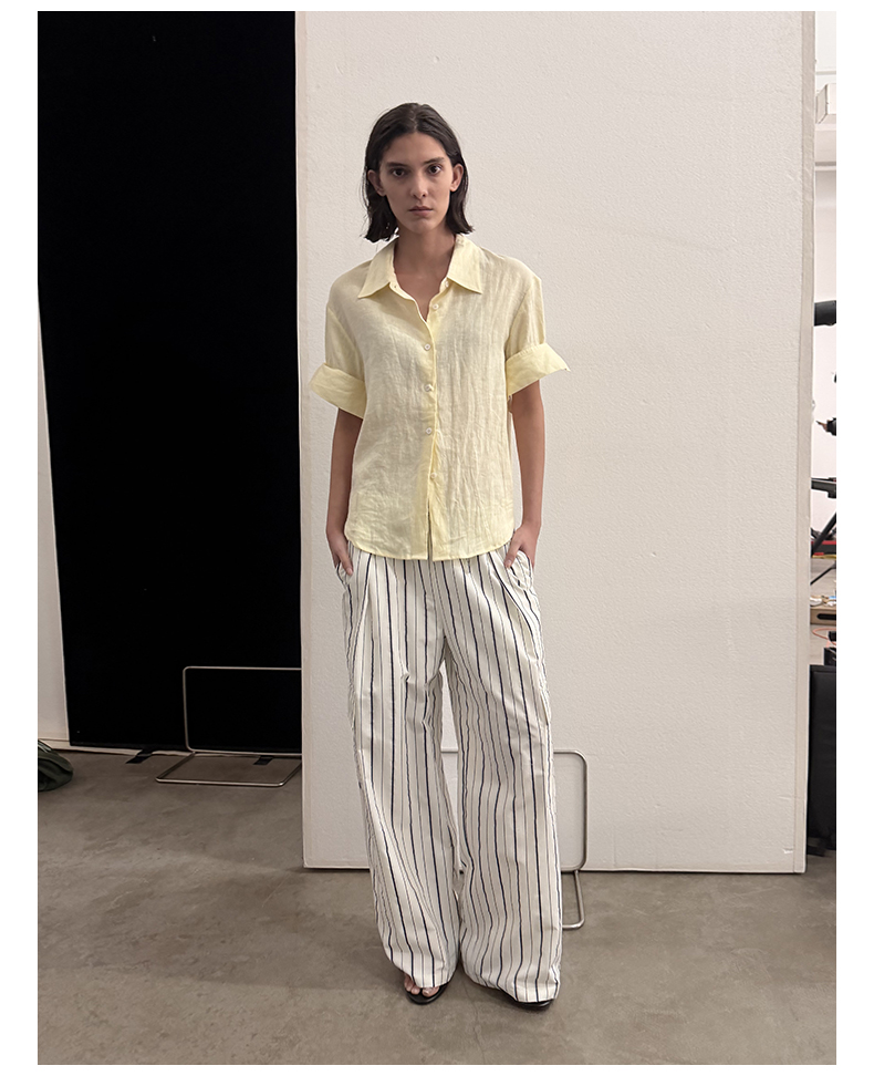 NUTH亚麻翻领宽松短袖衬衫女 湖蓝色/黄色/橙色